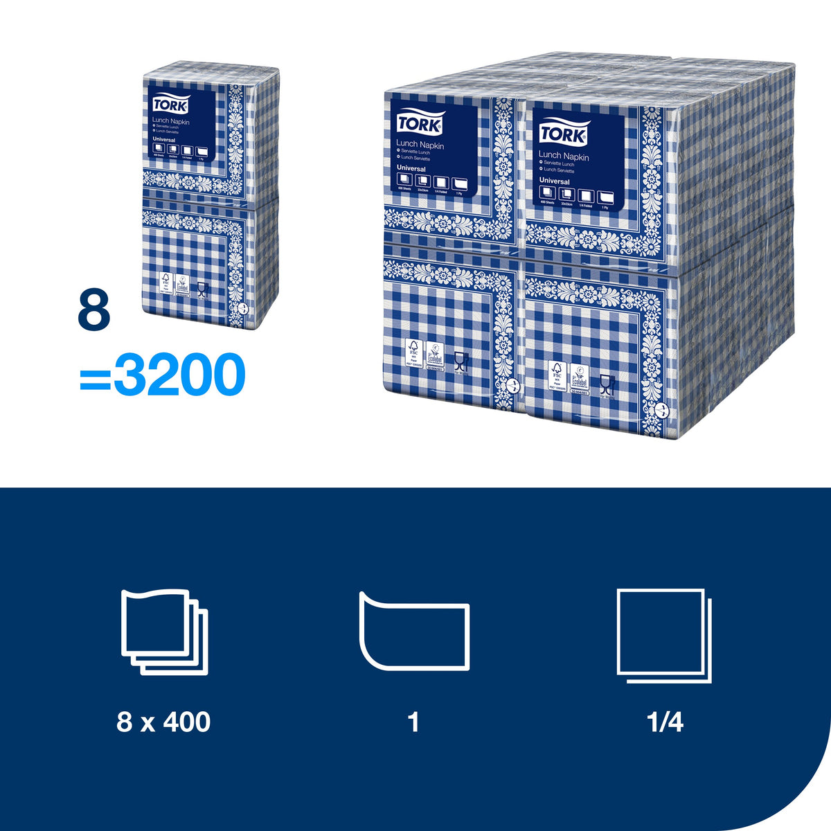 Halten Sie die Kosten gering, ohne an Nutzen einbüßen zu müssen mit unseren 1-lagigen Tork Lunchservietten. Die praktische Größe ist ideal für Schnellrestaurants und Imbisse. Da sie in einer Großpackung geliefert werden, gehen sie auch nicht so schnell aus und Sie können sich voll und ganz Ihren Gästen widmen. Diese gemusterten Restaurant-Servietten sind in verschiedenen Farben erhältlich, sodass Sie ganz leicht ein optisch ansprechendes Ambiente am Tisch schaffen können.