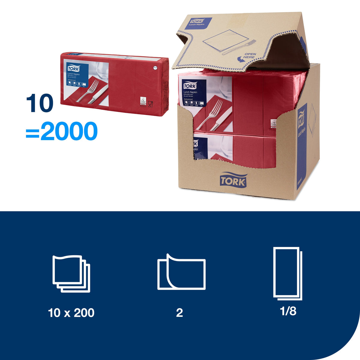 Sparen Sie wertvolle Zeit mit unseren vorgefalteten Tork Lunchservietten, wenn Sie kleine Mahlzeiten oder einen Snack servieren. Sie profitieren dank des praktischen Lunch-Formats von einem hervorragenden Preis-Leistungs-Verhältnis und das 2-lagige Design sorgt dafür, dass verschüttete Speisen und Getränke schnell aufgewischt werden können. Suchen Sie die Papierservietten passend zu Ihrer Einrichtung aus: Wir bieten eine große Palette an modernen und klassischen Farbtönen zur Auswahl.