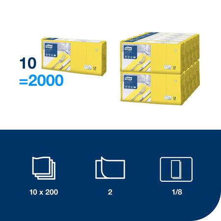 Sparen Sie wertvolle Zeit mit unseren vorgefalteten Tork Lunchservietten, wenn Sie kleine Mahlzeiten oder einen Snack servieren. Sie profitieren dank des praktischen Lunch-Formats von einem hervorragenden Preis-Leistungs-Verhältnis und das 2-lagige Design sorgt dafür, dass verschüttete Speisen und Getränke schnell aufgewischt werden können. Suchen Sie die Papierservietten passend zu Ihrer Einrichtung aus: Wir bieten eine große Palette an modernen und klassischen Farbtönen zur Auswahl.