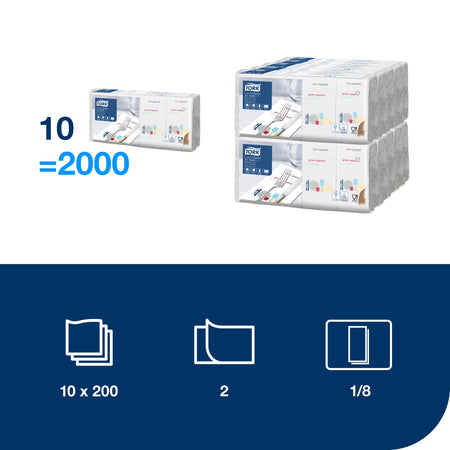 Sparen Sie wertvolle Zeit mit unseren vorgefalteten Tork Lunchservietten, wenn Sie kleine Mahlzeiten oder einen Snack servieren. Sie profitieren dank des praktischen Lunch-Formats von einem hervorragenden Preis-Leistungs-Verhältnis und das 2-lagige Design sorgt dafür, dass verschüttete Speisen und Getränke schnell aufgewischt werden können. Suchen Sie die Papierservietten passend zu Ihrer Einrichtung aus: Wir bieten eine große Palette an modernen und klassischen Farbtönen zur Auswahl.