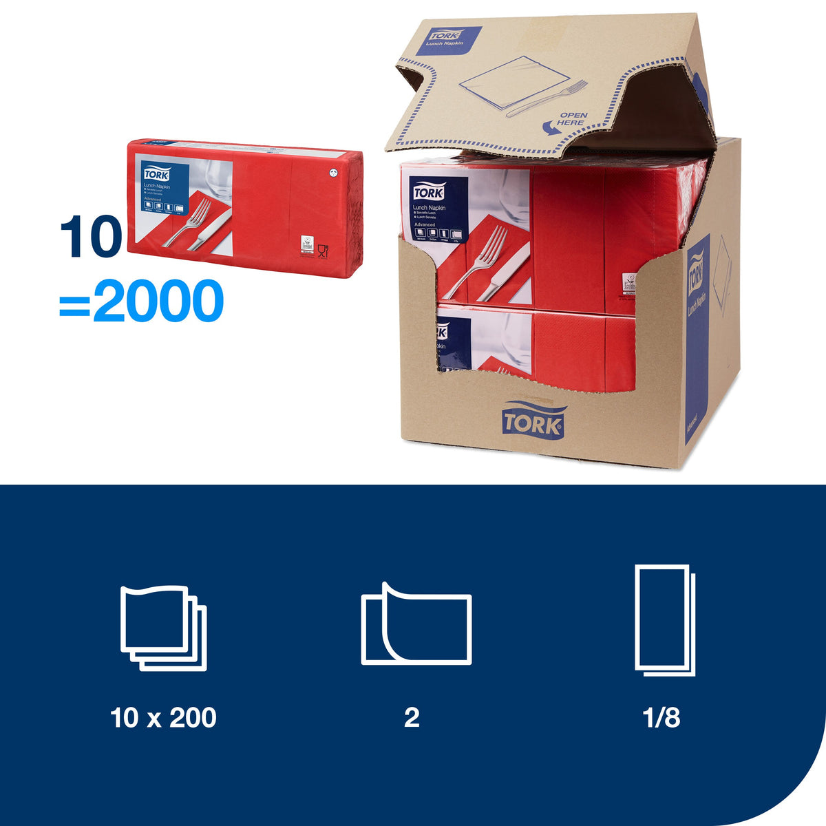 Sparen Sie wertvolle Zeit mit unseren vorgefalteten Tork Lunchservietten, wenn Sie kleine Mahlzeiten oder einen Snack servieren. Sie profitieren dank des praktischen Lunch-Formats von einem hervorragenden Preis-Leistungs-Verhältnis und das 2-lagige Design sorgt dafür, dass verschüttete Speisen und Getränke schnell aufgewischt werden können. Suchen Sie die Papierservietten passend zu Ihrer Einrichtung aus: Wir bieten eine große Palette an modernen und klassischen Farbtönen zur Auswahl.