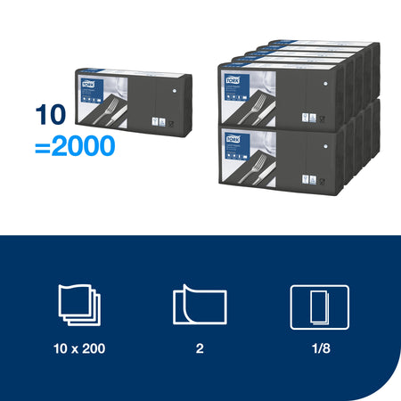 Sparen Sie wertvolle Zeit mit unseren vorgefalteten Tork Lunchservietten, wenn Sie kleine Mahlzeiten oder einen Snack servieren. Sie profitieren dank des praktischen Lunch-Formats von einem hervorragenden Preis-Leistungs-Verhältnis und das 2-lagige Design sorgt dafür, dass verschüttete Speisen und Getränke schnell aufgewischt werden können. Suchen Sie die Papierservietten passend zu Ihrer Einrichtung aus: Wir bieten eine große Palette an modernen und klassischen Farbtönen zur Auswahl.