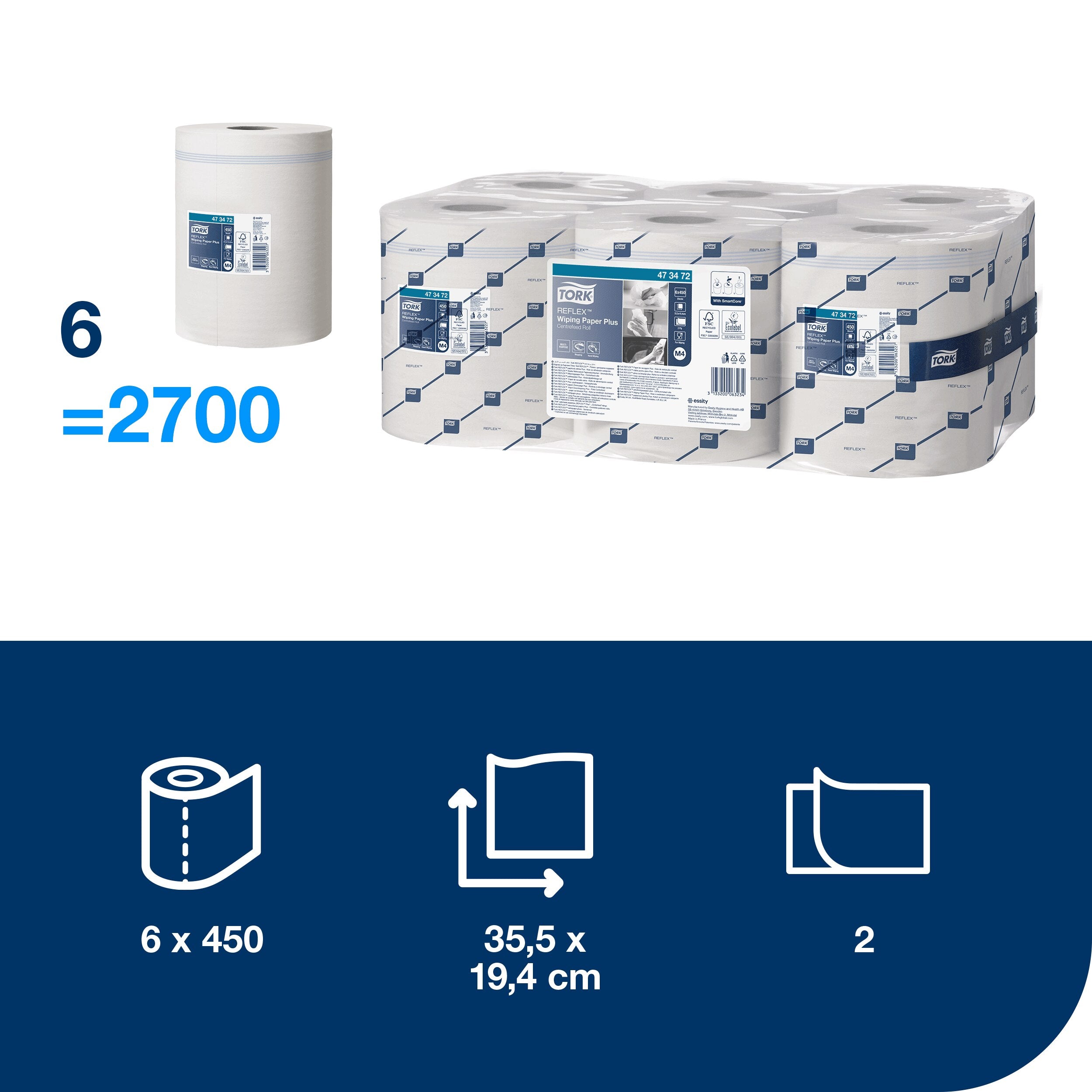 Tork Reflex™ Starke Mehrzweck-Papierwischtücher Weiß M4: