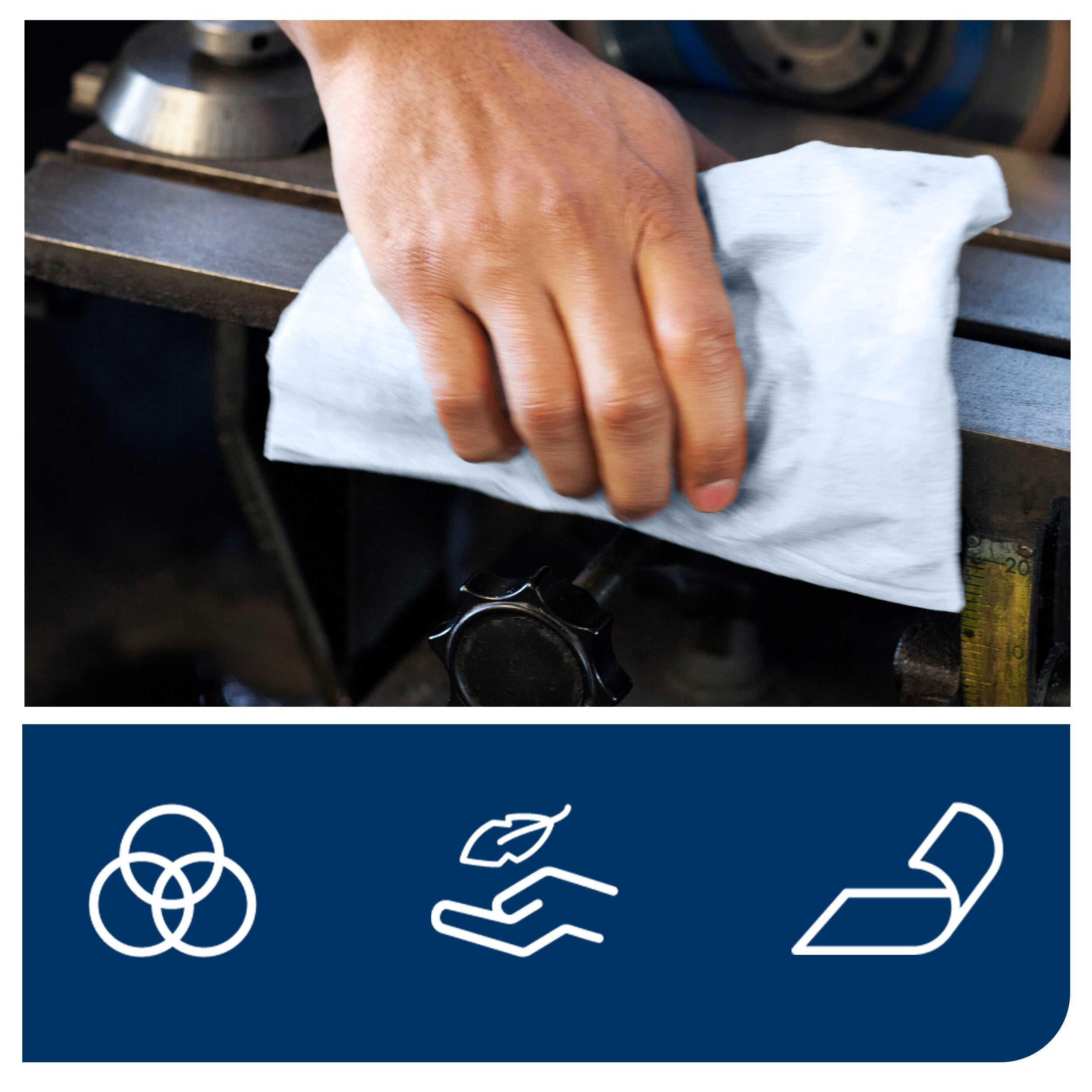 + Hohe Reißfestigkeit und Saugfähigkeit, um Öle, Fette, Schmierstoffe und Schmutz zu entfernen