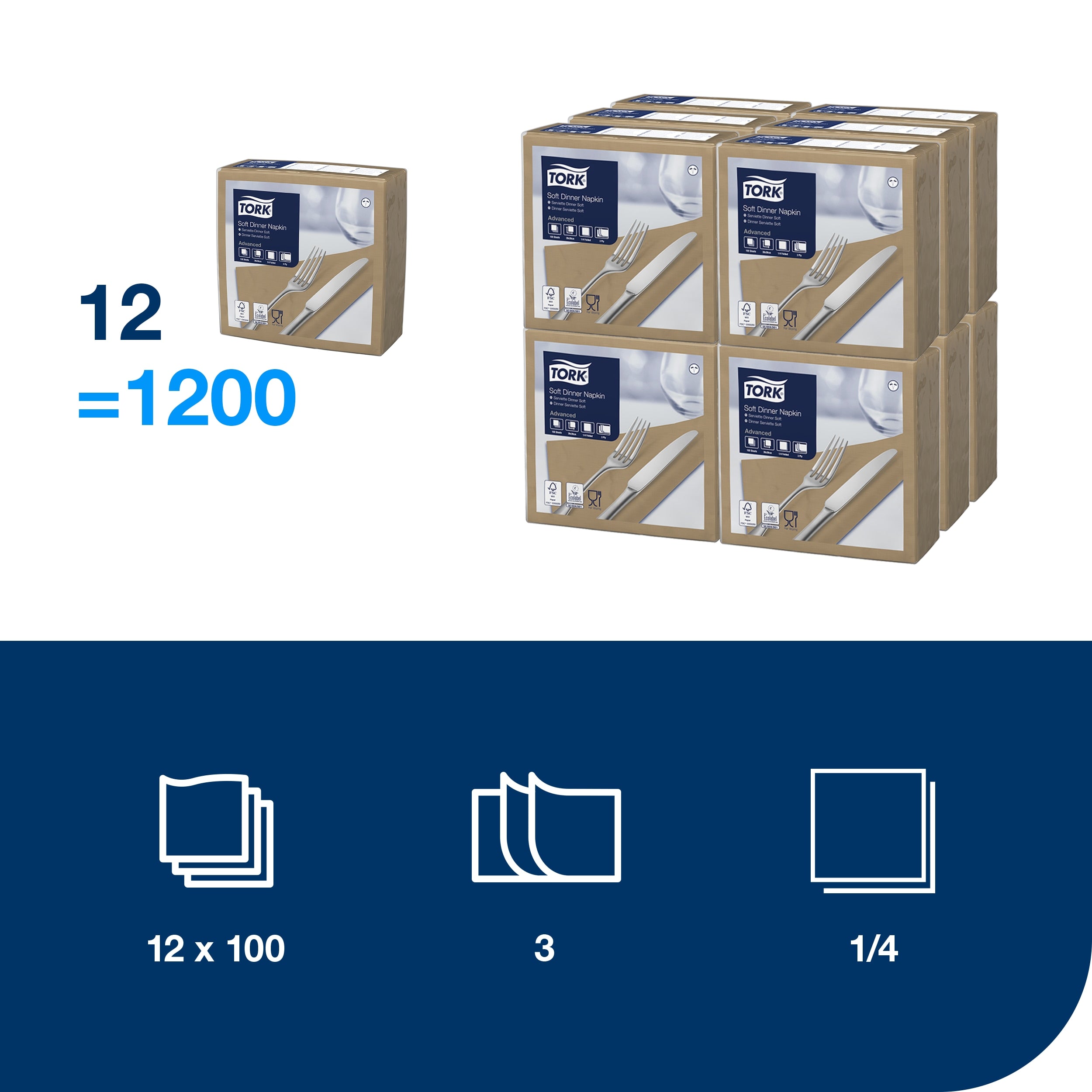 Bereichern Sie die Atmosphäre Ihres Restaurants mit unseren Tork Soft Dinnerservietten. Dank des größeren Formats bieten diese Servietten mehr Komfort. Die Qualität des Materials und die Stärke dieser 3-lagigen Papierservietten sind deutlich zu fühlen und steigern die Zufriedenheit der Gäste. Ihr Personal braucht weniger Zeit für das Eindecken der Tische, da sich die Servietten leicht falten lassen. Die breite Farbpalette dieser Servietten hilft Ihnen dabei, einen Farbton zu finden, der zur Einrichtung Ihres Restaurants passt.