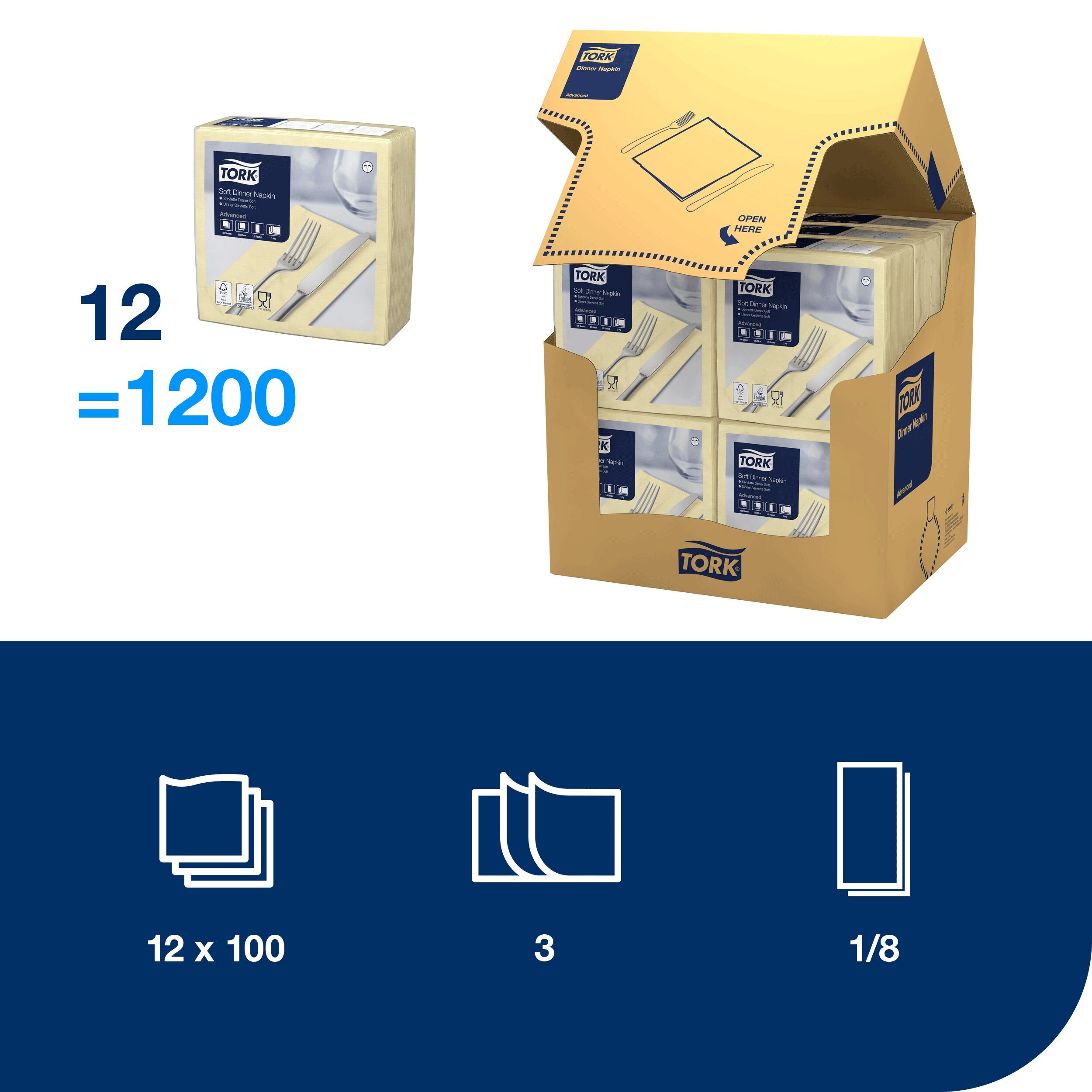 Beeindrucken Sie Ihre Gäste mit unseren hochwertigen Tork Soft Dinnerservietten, die dank ihres größeren Formats mehr Komfort bieten. Die 3‑lagigen Papierservietten sind außerdem so konzipiert, dass sie von der Vorspeise bis zum Dessert einsatzfähig sind, was den Verbrauch und damit auch die Kosten senkt. Die Servietten sind wegen ihrer Größe und Stärke leicht zu falten – so geht das Eindecken der Tische schneller. Dank einer breiten Palette moderner und klassischer Farbtöne finden Sie genau die Servietten, die zu Ihrer Einrichtung passen.