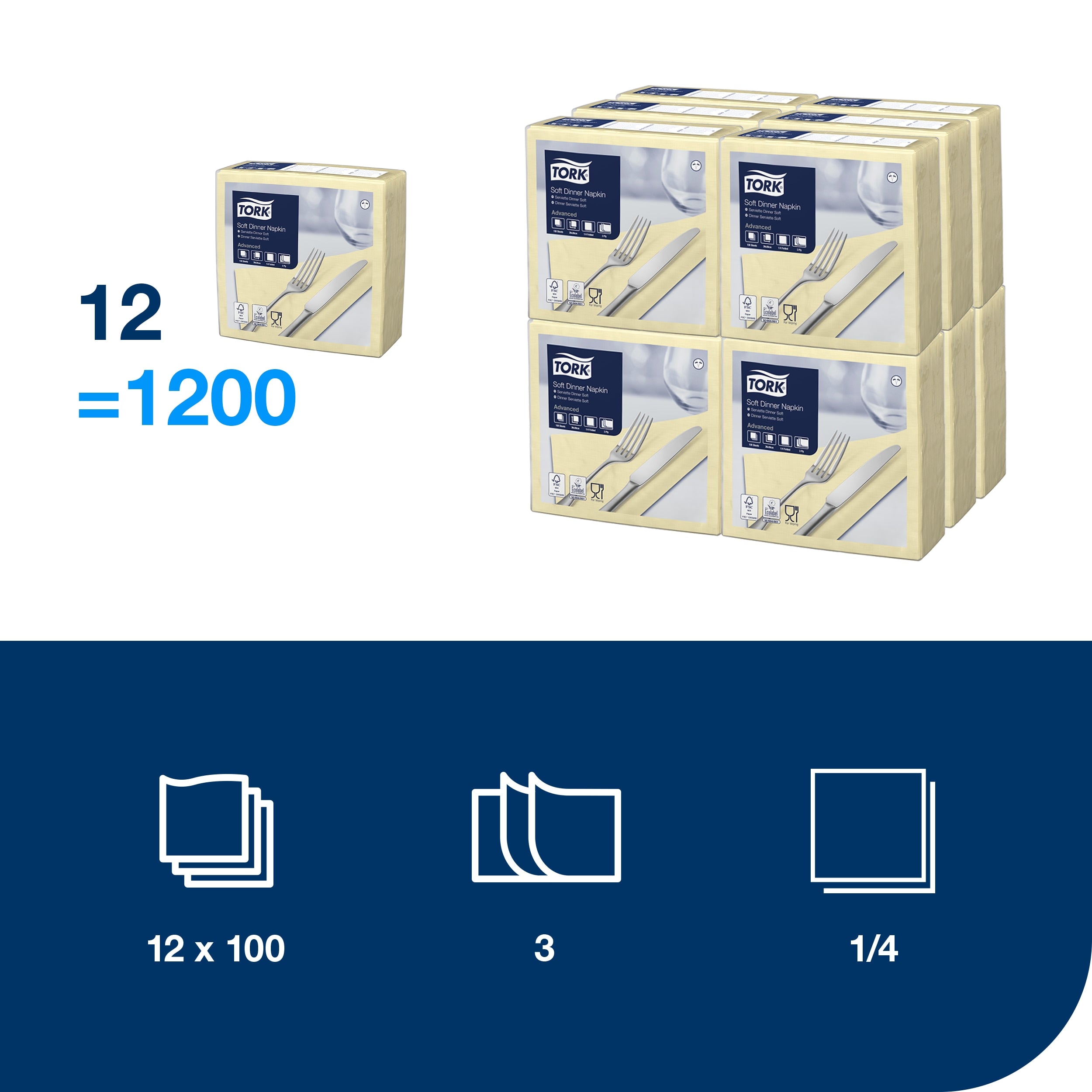 Bereichern Sie die Atmosphäre Ihres Restaurants mit unseren Tork Soft Dinnerservietten. Dank des größeren Formats bieten diese Servietten mehr Komfort. Die Qualität des Materials und die Stärke dieser 3-lagigen Papierservietten sind deutlich zu fühlen und steigern die Zufriedenheit der Gäste. Ihr Personal braucht weniger Zeit für das Eindecken der Tische, da sich die Servietten leicht falten lassen. Die breite Farbpalette dieser Servietten hilft Ihnen dabei, einen Farbton zu finden, der zur Einrichtung Ihres Restaurants passt.