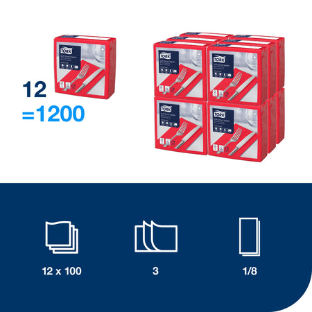 Beeindrucken Sie Ihre Gäste mit unseren hochwertigen Tork Soft Dinnerservietten, die dank ihres größeren Formats mehr Komfort bieten. Die 3‑lagigen Papierservietten sind außerdem so konzipiert, dass sie von der Vorspeise bis zum Dessert einsatzfähig sind, was den Verbrauch und damit auch die Kosten senkt. Die Servietten sind wegen ihrer Größe und Stärke leicht zu falten – so geht das Eindecken der Tische schneller. Dank einer breiten Palette moderner und klassischer Farbtöne finden Sie genau die Servietten, die zu Ihrer Einrichtung passen.