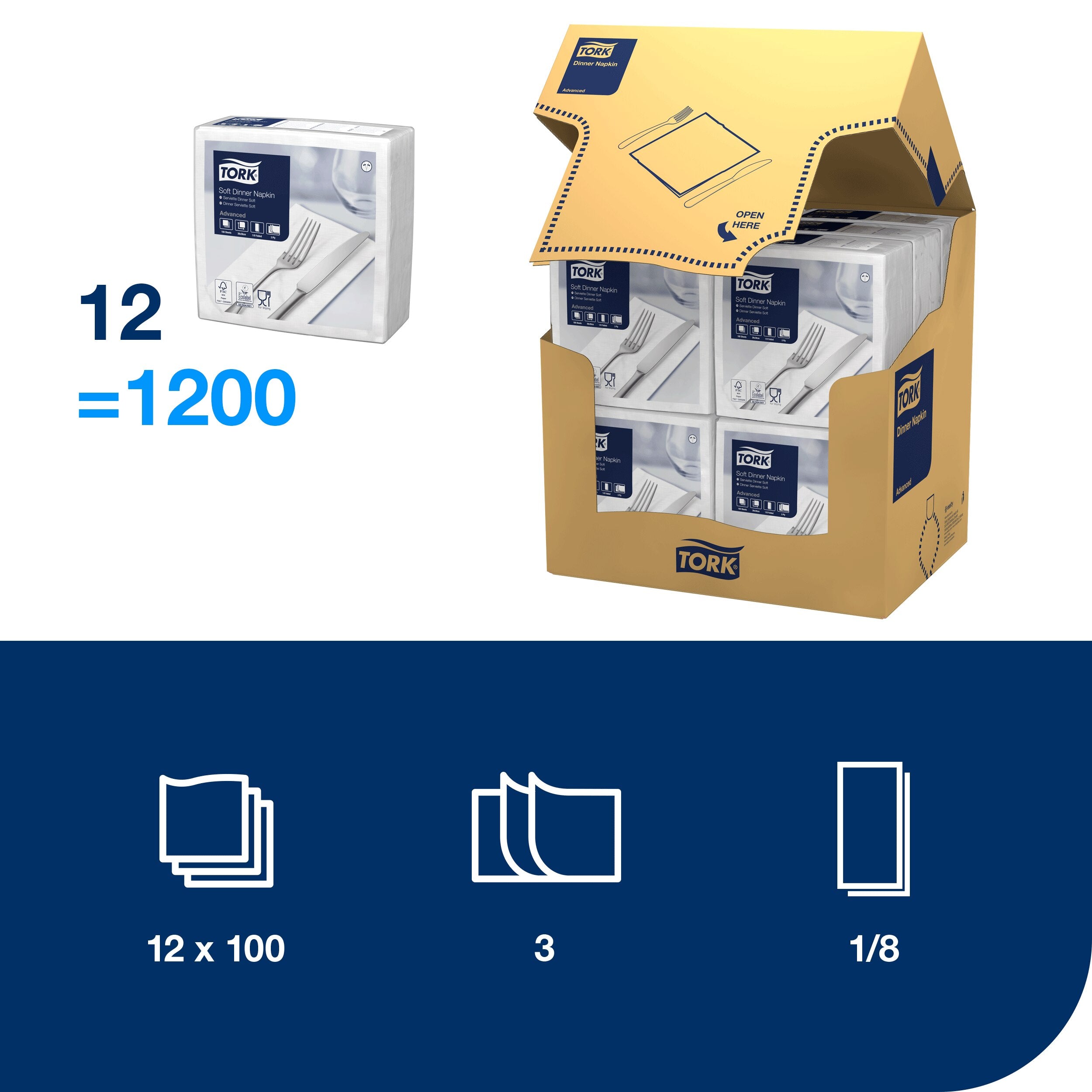 Beeindrucken Sie Ihre Gäste mit unseren hochwertigen Tork Soft Dinnerservietten, die dank ihres größeren Formats mehr Komfort bieten. Die 3‑lagigen Papierservietten sind außerdem so konzipiert, dass sie von der Vorspeise bis zum Dessert einsatzfähig sind, was den Verbrauch und damit auch die Kosten senkt. Die Servietten sind wegen ihrer Größe und Stärke leicht zu falten – so geht das Eindecken der Tische schneller. Dank einer breiten Palette moderner und klassischer Farbtöne finden Sie genau die Servietten, die zu Ihrer Einrichtung passen.