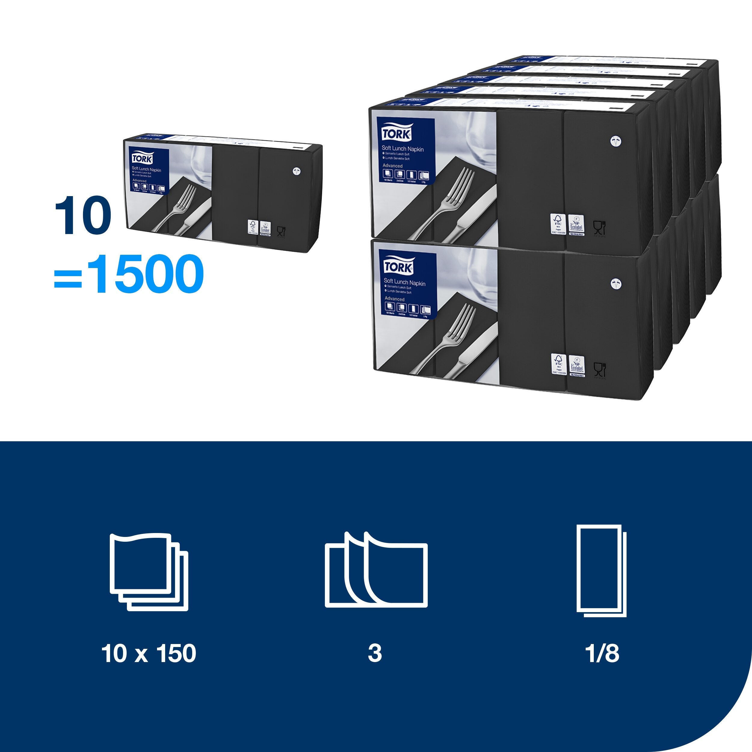 Mit unseren soften Tork Lunchservietten genießen Ihre Gäste die Mahlzeit noch mehr. Dank des sehr saugfähigen 3-lagigen Designs können Sie schnell verschüttete Flüssigkeiten aufwischen. Die praktische Größe ist ideal für kleine Mahlzeiten oder Snacks und bietet ein hervorragendes Preis-Leistungs-Verhältnis. Die Papierservietten sind vorgefaltet, was Ihren Mitarbeitern wertvolle Zeit beim Eindecken spart. In unserer großen Auswahl an modernen und klassischen Farben finden Sie den passenden Ton für Ihre Einrichtung.