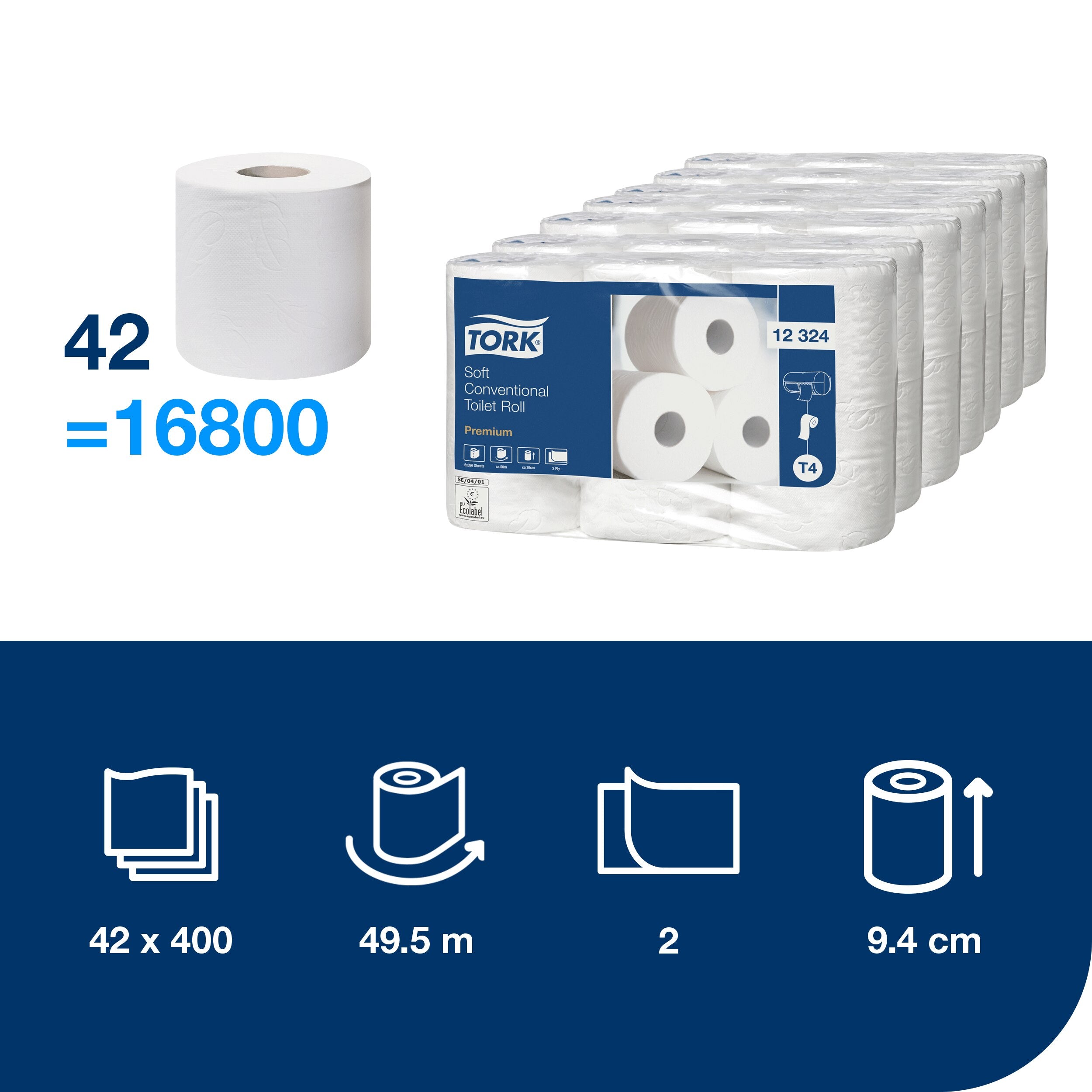 Tork weiches Kleinrollen Toilettenpapier Weiß T4: