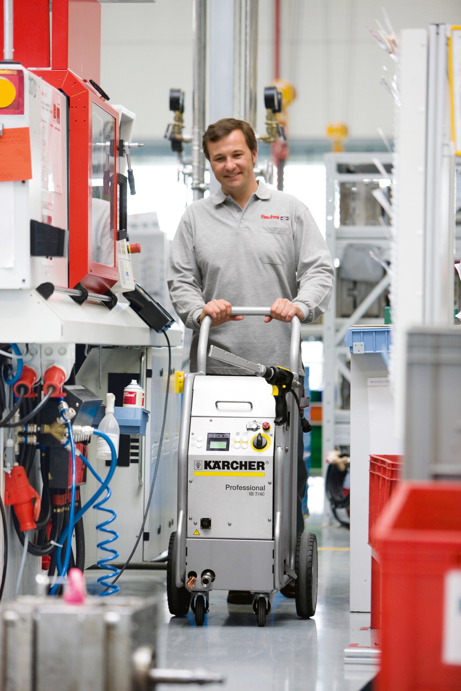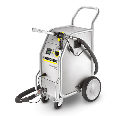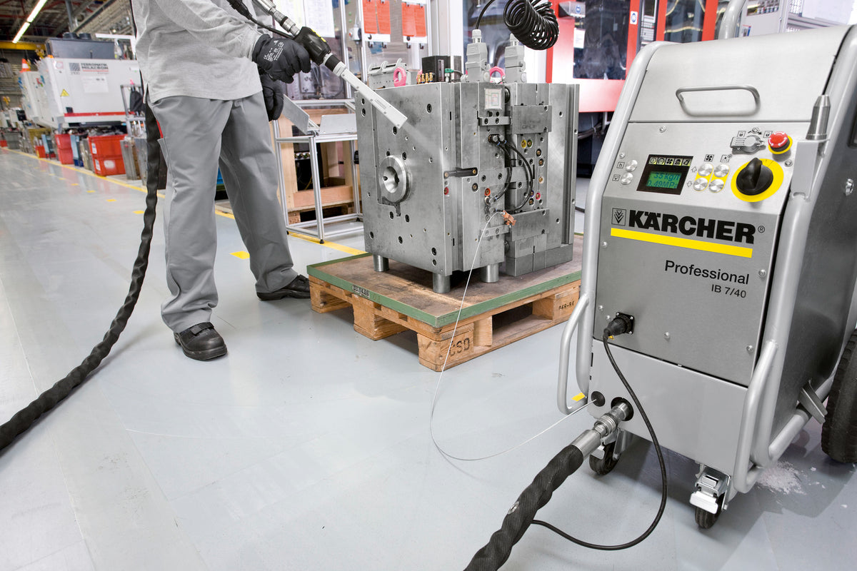 Ein durchdachtes Konzept, viele clevere Details, robuste Langlebigkeit und die sehr hochwertige Verarbeitung kennzeichnen unseren Ice Blaster IB 7/40 Advanced. Der Trockeneisstrahler der jüngsten Generation ist für harte Dauereinsätze konzipiert und hervorragend ausgestattet. So verfügt er serienmäßig über einen integrierter Erdungsseilaufroller, eine Resteisentleerung, die das Einfrieren des Geräts nach Beenden der Arbeit verhindert sowie einen Öl- und Wasserabscheider für einen zuverlässigen Betrieb. Die Luftführung ist so optimiert, dass selbst bei geringen Drücken und geringem Luftverbrauch (max. 3,5 m³/min) sehr gute Reinigungsergebnisse selbstverständlich sind und gleichzeitig das Arbeitsgeräusch auf ein Minimum reduziert wird. Für einen hohen Arbeitskomfort sorgen die Strahlpistole mit Fernbedienung zur Verstellung der Strahlparameter, eine stufenlose Regulierung des Strahldrucks und der Eisfördermenge mittels Taster (auf Wunsch abschaltbar) und ein übersichtliches Display zum Ablesen aller Betriebsparameter. Zusätzlich sind auch statistische Werte wie Betriebszeit, durchschnittlicher Eisverbrauch pro Stunde oder der Eisverbrauch insbesamt abrufbar.