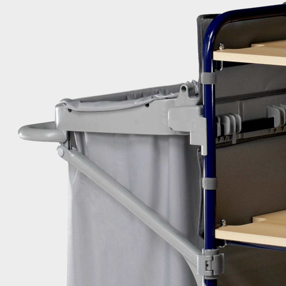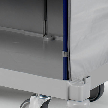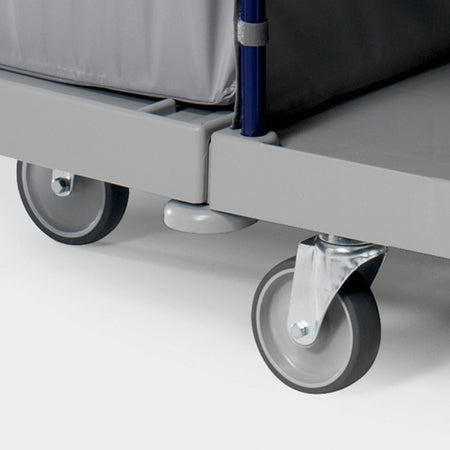 Mit dem Trolley Hotel Classic I sind auch enge Platzverhältnisse in Aufzügen oder Hotelgängen einfach zu bewältigen. Dafür sorgen 5 drehbar gelagerte, 125 Millimeter große Räder. Der robuste Hotelwagen ist zur Reinigung und Versorgung von bis zu 15 Zimmern geeignet und sehr ergonomisch und rückenschonend zu nutzen. Ein hochklappbarer 120 Liter großer Müllsackhalter bietet ausreichend Volumen zur Entsorgung des Abfalls, 3 Fächer aus Holz erleichtern die Mitnahme und den Zugriff auf Reinigungsutensilien und Materialien. Rostfreie Materialien gewährleisten eine lange Lebensdauer, glatte Oberflächen erleichtern bei Bedarf die Eigenreinigung.