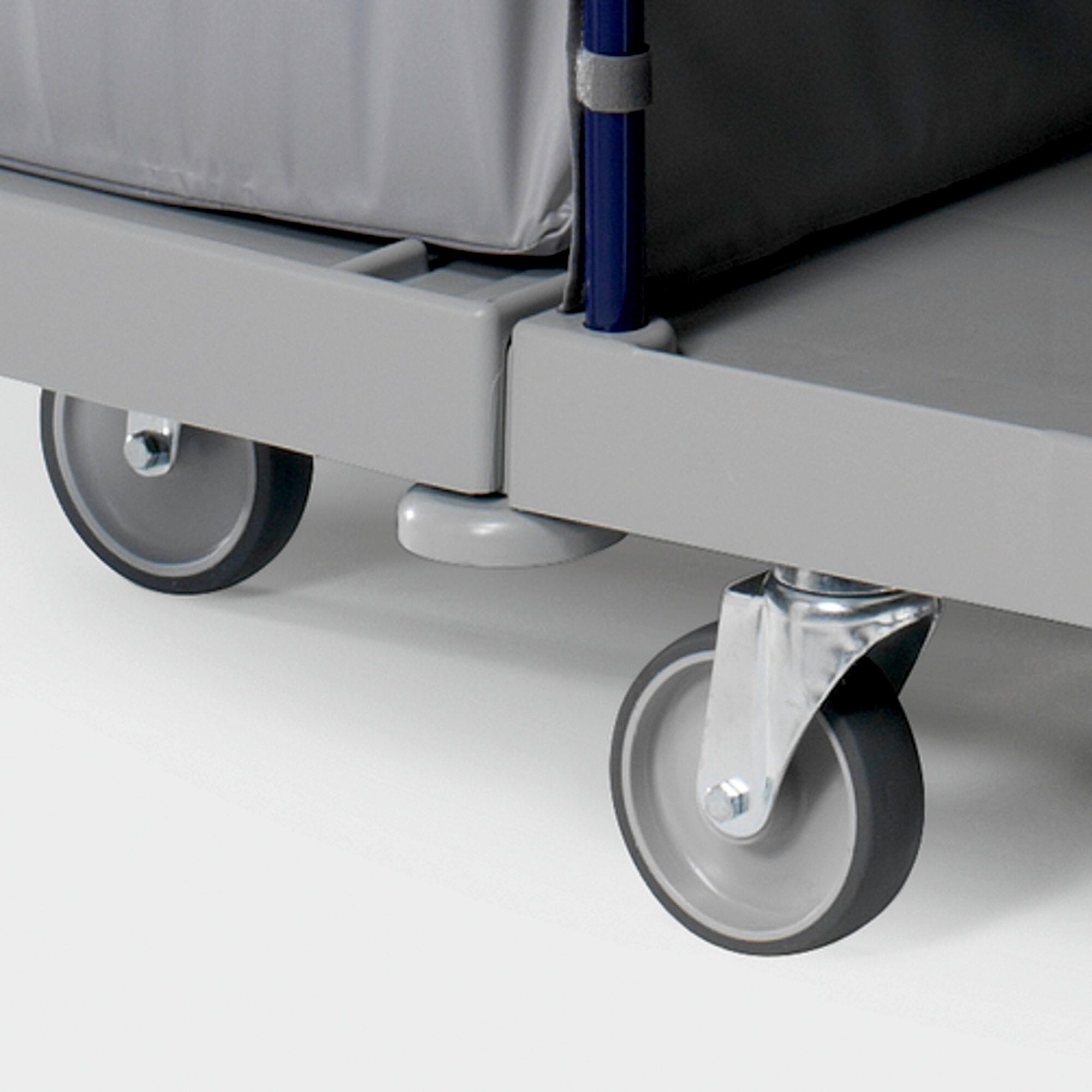 - Einfache ManövrierbarkeitFünf drehbare Räder ermöglichen einfaches Manövrieren auf engstem Raum.