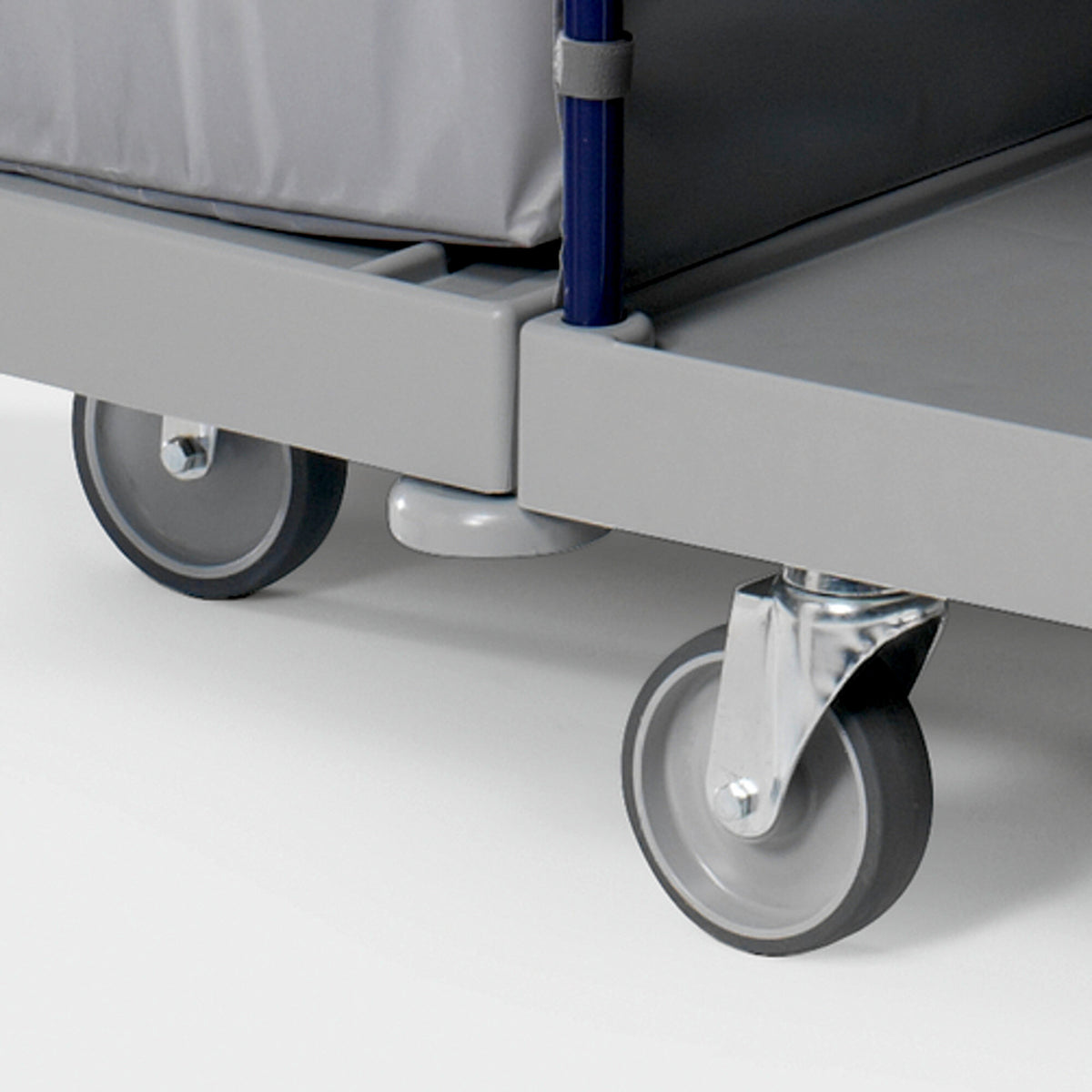 - Einfache ManövrierbarkeitFünf drehbare Räder ermöglichen einfaches Manövrieren auf engstem Raum.