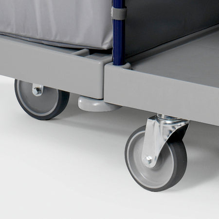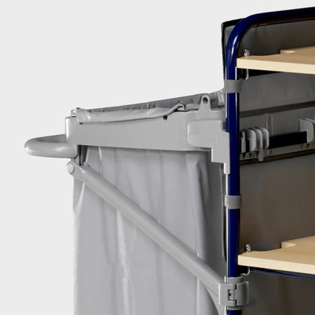 Ideal zur Reinigung und Versorgung von 15 bis zu 18 Zimmern eignet sich der Trolley Hotel Classic II. Mit 3 Holzfächern zur mühelosen Mitnahme und den einfachen Zugriff auf Reinigungsutensilien und Materialien sowie einem hochklappbaren 120-Liter-Müllsackhalter ist der robuste Hotelwagen sehr einfach und zugleich rückenschonend zu nutzen. Dazu ermöglichen 5 drehbare, 125 Millimeter große Räder einfaches Manövrieren – auch auf engstem Raum. Konstruiert aus rostfreien Materialien mit glatten Oberflächen überzeugt er darüber hinaus mit einer langen Lebensdauer und bei Bedarf einfacher Eigenreinigung.