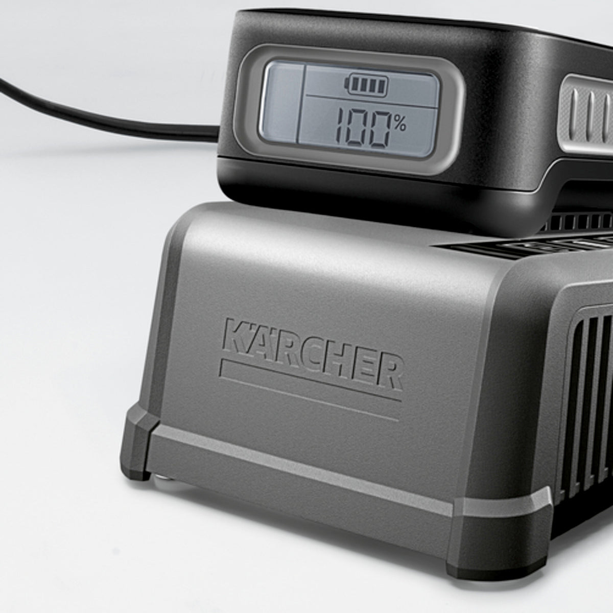 - KompatibilitätKompatibel mit allen 18 und 36 V Kärcher Battery Power-Wechselakkus.Kompatibel mit allen 18 und 36 V Kärcher Battery Power+-Wechselakkus.