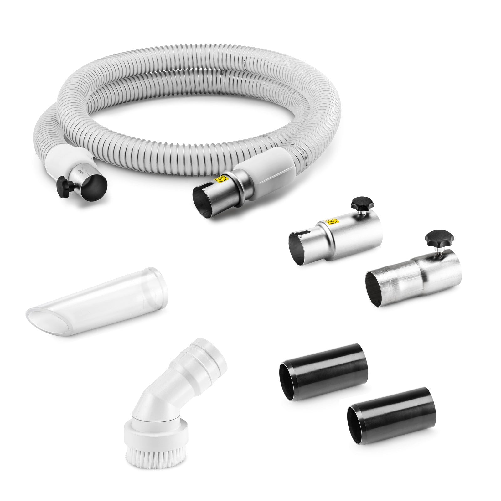 Zubehörset DN50 für Lebensmittel: PU-Schlauch 3 m (9.989-973.0), Handgriff (9.989-899.0), Standarddüse (9.989-844.0), Bürste (9.989-880.0), Reduzierung (9.989-712.0), Adapter (9.993-011.0).