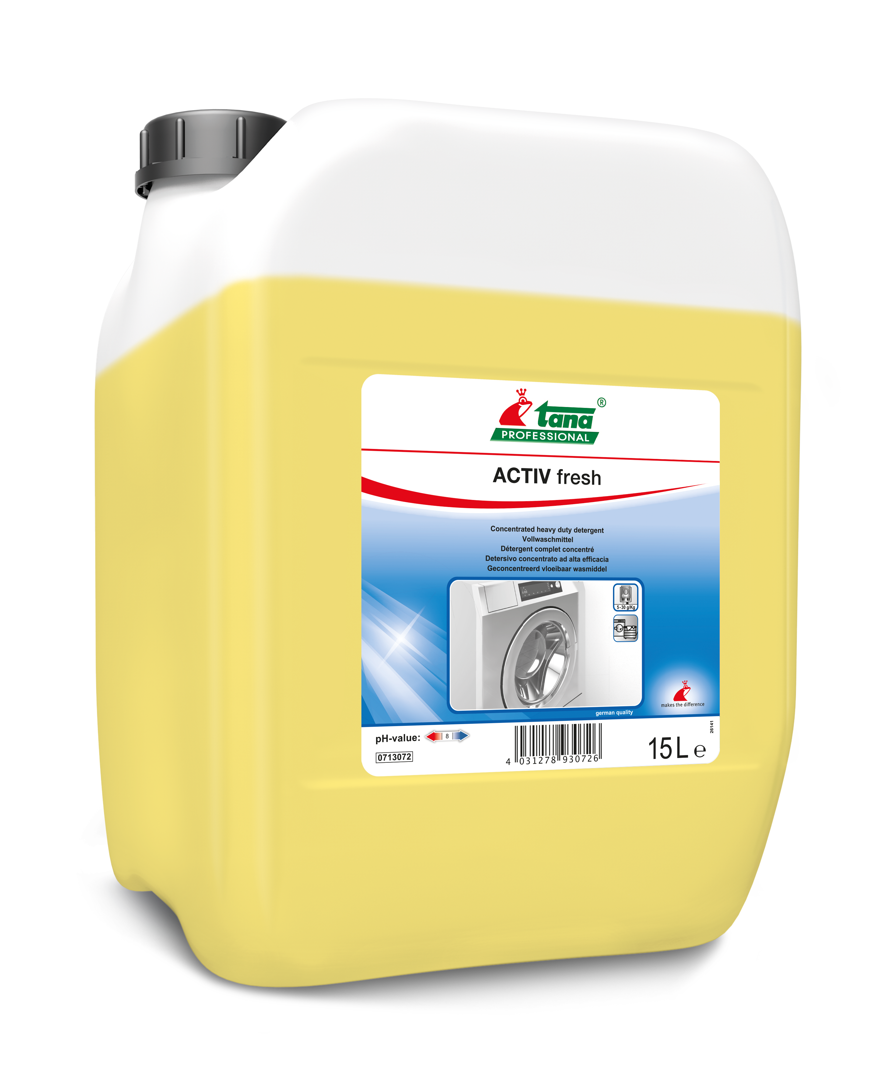 - Haute performance dégraissante et biodétachante : très concentrée en agents tensio-actifs et en enzymes, ACTIV fresh offre une haute efficacité de lavage à toutes températures.
