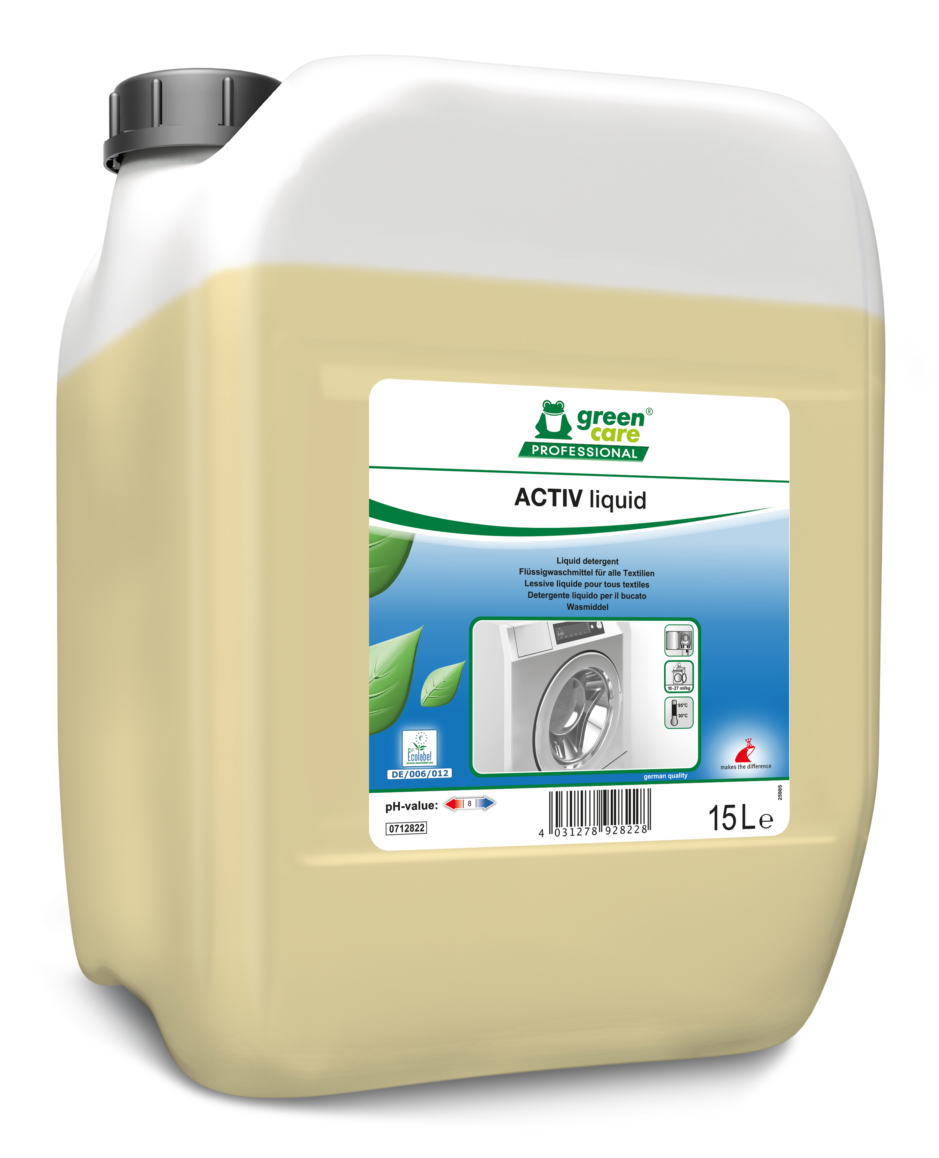 - Activ liquid est une lessive liquide concentrée tous textiles haute performance même à 30°C. Respectant les cycles biologiques, protégeant la santé et la sécurité du personnel de nettoyage.