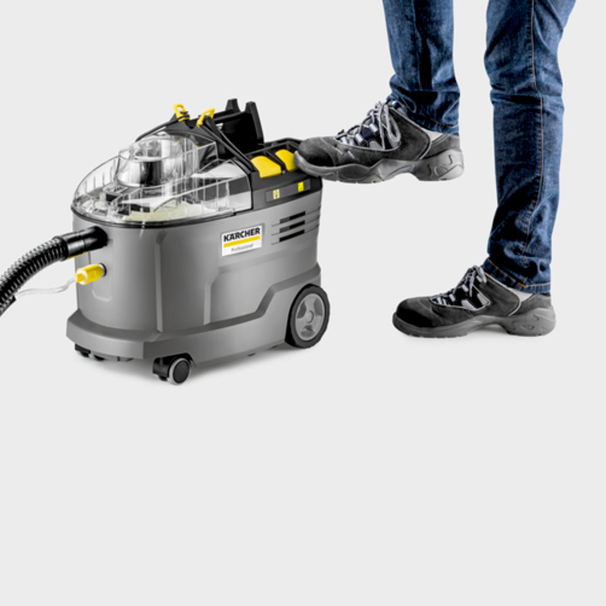 Unique au monde, robuste et sans fil pour plus de flexibilité : notre injecteur-extracteur sans fil Puzzi 9/1 Bp. Unique injecteur-extracteur professionnel du marché à fonctionner sur batterie, ce Puzzi s'illustre par des performances exceptionnelles et une liberté de mouvement maximale lors du nettoyage des capitonnages et des surfaces textiles, par exemple dans l'hôtellerie et la gastronomie, lors du nettoyage intérieur des véhicules ou du nettoyage de bâtiments. De plus, ce Puzzi est extrêmement silencieux, ce qui permet de l'utiliser même dans les lieux recevant du public, et se transporte aisément d'une seule main grâce à la poignée de transport ergonomique. Pour un résultat optimal lors d'un nettoyage en profondeur, la solution de nettoyage est injectée sous pression jusqu'au cœur des fibres textiles puis réaspirée en même temps que la saleté décollée. Fournis de série : un suceur fauteuil ultra court, un flexible d'injection/d'extraction, un réservoir 2 en 1 pour l'eau propre et l'eau sale, un support intégré pour les accessoires et bien plus encore. En cas de commande, veuillez noter que pour cette version de l'appareil, la puissante batterie Kärcher Battery Power+ 36 V ainsi que le chargeur rapide correspondant doivent être commandés séparément.