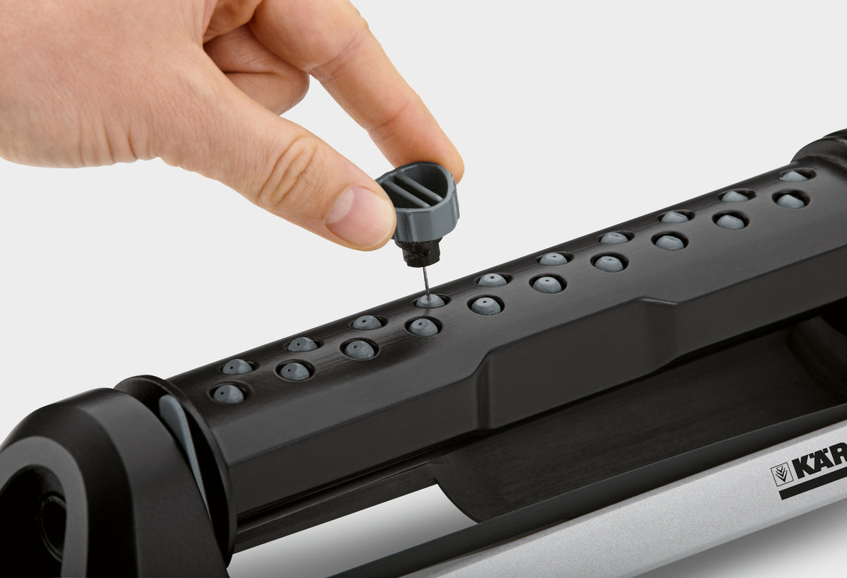 L'arroseur oscillant OS 5.320 SV à largeur de jet réglable convient à l'arrosage des surfaces et jardins moyens à grands. La surface d'arrosage maximale de cet appareil oscillant s'élève à 320 m². Le débit de cet arroseur par pulvérisation est réglable pour s'adapter au besoin, de zéro à la valeur maximale. Selon le besoin, les arroseurs Kärcher peuvent être équipés, au choix, de pics de fixation ou d'un traîneau. Ainsi les nouveaux arroseurs oscillants Kärcher sont-ils encore plus faciles d'utilisation. Le système de protection anti-éclaboussures intégré SplashGuard permet une installation et une orientation aisées, en restant au sec. Les gicleurs Kärcher sont naturellement équipés d'un système de fixation par clic éprouvé, pour un raccordement facile au tuyau d'arrosage. L'arrosage Kärcher, un arrosage intelligent.