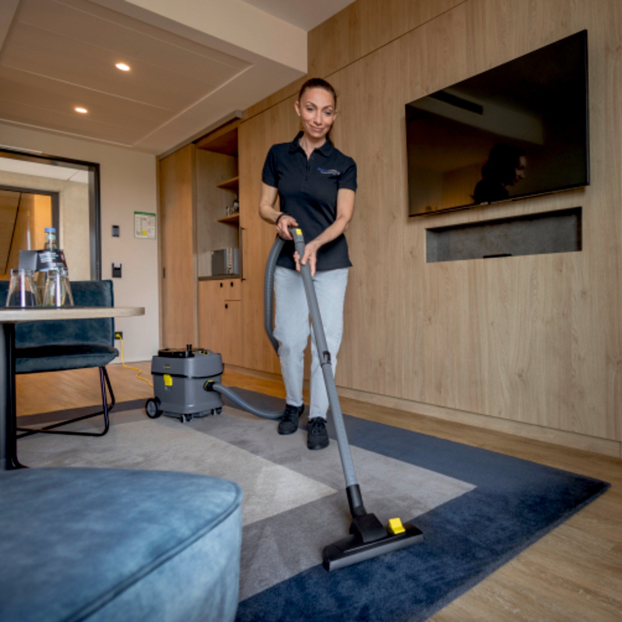 L'aspirateur poussières T 15/1 Adv de Kärcher est synonyme de durabilité, de longévité, d'une excellente puissance d'aspiration et d'un fonctionnement ultra silencieux. En outre, il s'illustre par sa robustesse, son vaste éventail d'accessoires et son excellent rapport qualité-prix. Dès sa fabrication à partir de 45 % de matières recyclées*, les ressources sont protégées et les besoins énergétiques sont réduits. Doté d'une aspiration puissante, le T 15/1 Adv se caractérise par son faible bruit de fonctionnement (52 dB[A]) et est si silencieux qu'il peut être utilisé à tout moment dans les lieux sensibles au bruit. Cet aspirateur est maniable et stable ; sa cuve peut contenir 15 litres. Il dispose d'une poignée de transport au format rabattable pour un transport ergonomique et près du corps. En outre, il est très durable et robuste, tout comme son châssis, son boîtier, son pare-chocs et ses grandes roues. La fourniture inclut un suceur pour fentes et un suceur pour meubles qui peuvent toujours être rangés à portée de main sur l'aspirateur. La fourniture du T 15/1 Adv inclut de nombreux accessoires : flexible d'aspiration, coude antistatique, tube d'aspiration télescopique léger et réglable en hauteur (aluminium), suceur pour sol commutable, suceur parquet, suceur pour fentes et suceur pour meubles.