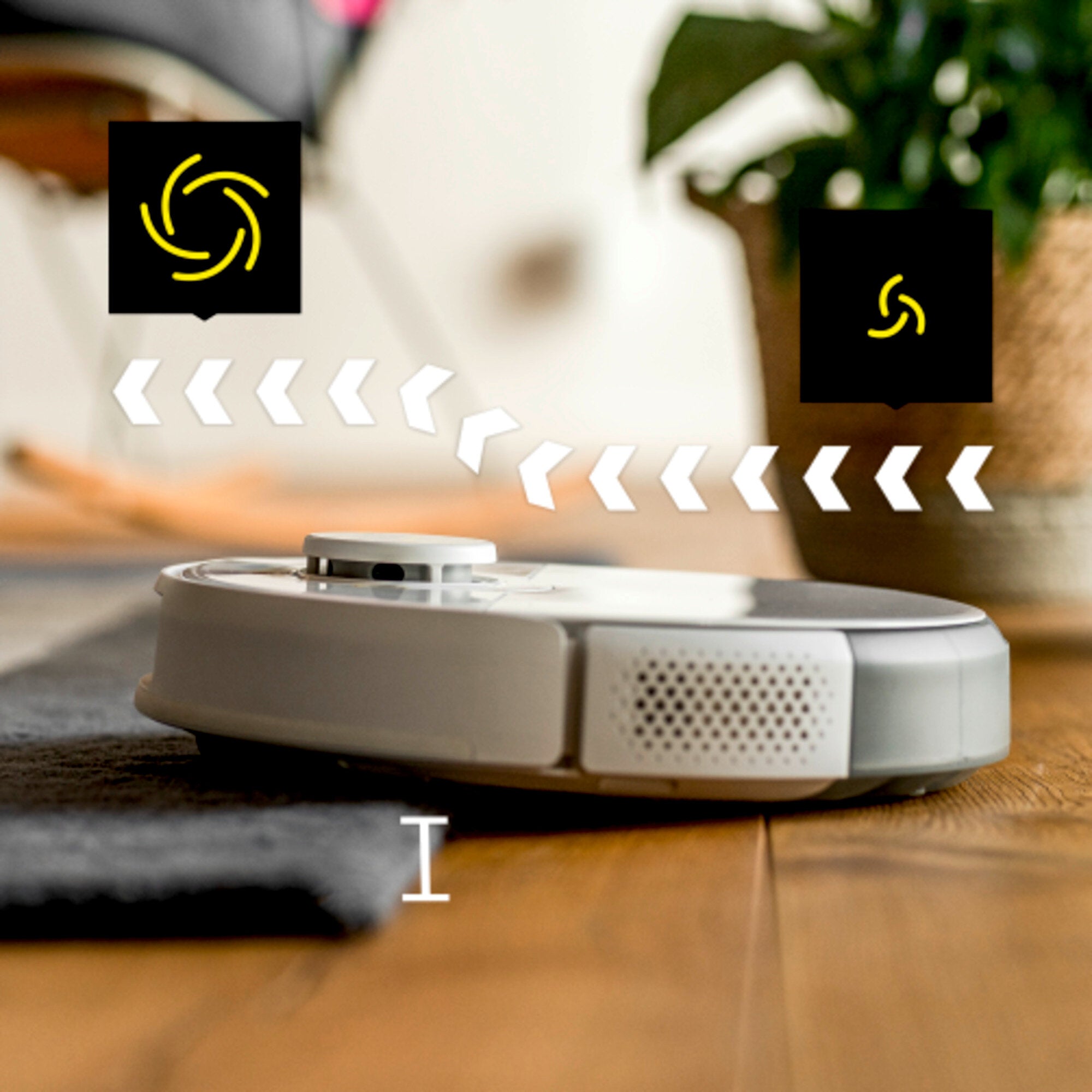 - Rilevamento tappeti: il robot aspirapolvere rileva automaticamente i tappeti, aumentando la potenza di aspirazione per una pulizia ottimale, e salva le aree nell'app per evitarne il lavaggio