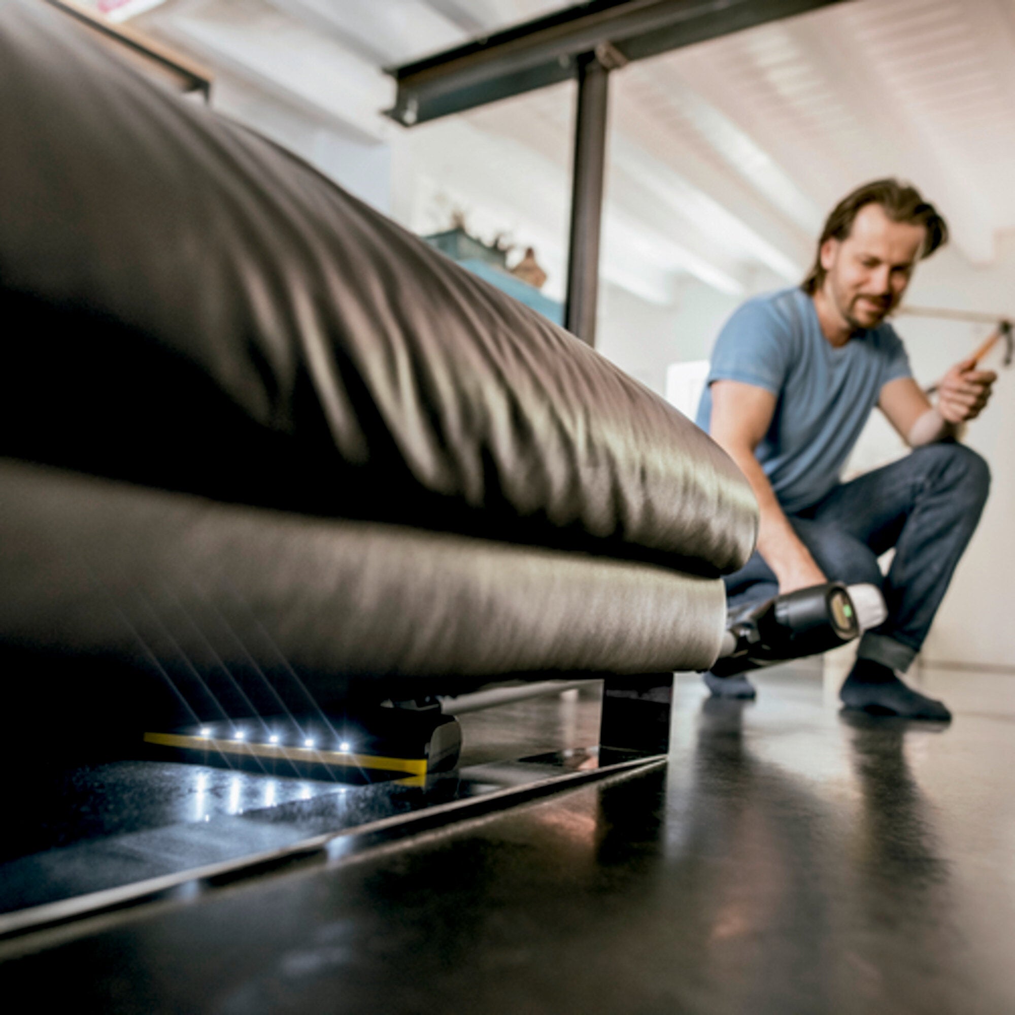Utilisation polyvalente grâce aux accessoires supplémentaires : avec ses nombreux accessoires, le VC 6 Cordless ourFamily Extra est parfaitement équipé pour toutes les tâches qu'un aspirateur poussières doit accomplir. En outre, il offre un confort maximal et une autonomie pouvant atteindre cinquante minutes. Le moteur BLDC de 250 watts garantit une aspiration sans effort, aussi bien pour le grand nettoyage de la maison que pour les petits accidents. Le suceur pour sol motorisé, doté d'un éclairage à LED, aspire aussi efficacement les sols durs que les moquettes. Pour les meubles capitonnés ou les matelas, une mini-brosse turbo motorisée est disponible. Le confort est assuré par le vidage du collecteur de poussière en un clic, la fonction boost pour augmenter la puissance d'aspiration, le design ergonomique pour passer facilement sous les meubles, l'indicateur de niveau de batterie avec 3 niveaux et le niveau sonore agréable pendant l'aspiration. Grâce au bouton de verrouillage, il n'est plus nécessaire de maintenir enfoncé le bouton d'alimentation en permanence. Avec son faible poids, l'appareil peut également être utilisé comme aspirateur à main compact. La fourniture inclut un suceur pour fentes à LED pour les recoins et les fentes sombres, une brosse plumeau 2 en 1, un outil de nettoyage pour le filtre ainsi qu'un deuxième filtre de rechange et une station d'accueil autonome avec support pour accessoires et fonction de charge.