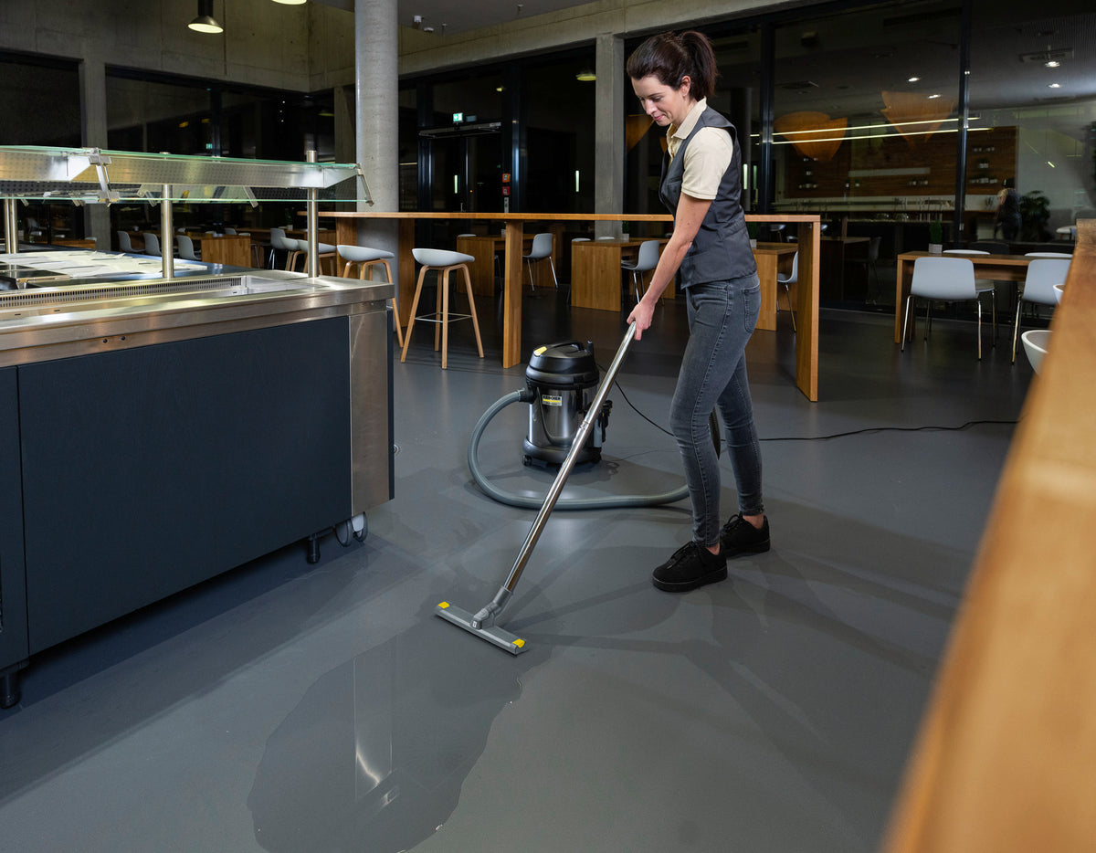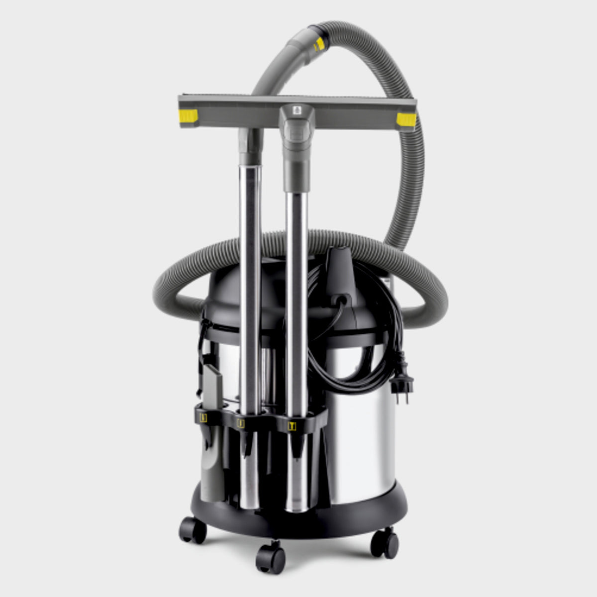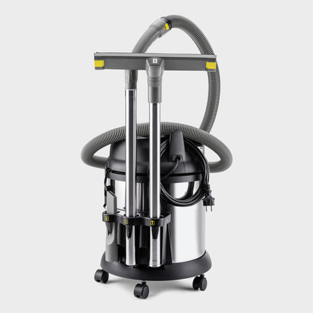 Le NT 27/1 Me Advanced est un aspirateur eau et poussières compact, maniable et particulièrement facile à utiliser pour un usage industriel universel. La puissance d'aspiration phénoménale du NT 27/1 Me Advanced résulte de sa turbine d'aspiration performante. Il est équipé d'un filtre cartouche dont la surface a été élargie. Une désactivation mécanique à flotteur dès que la hauteur de remplissage maximale est atteinte garantit une durée de vie prolongée et un travail sécurisé. Le système à clipser pratique pour un remplacement ou un raccordement rapide des accessoires offre une manipulation simple. Cinq roulettes pivotantes permettent de l'entraîner facilement, garantissent sa maniabilité et un positionnement stable. En outre, le NT 27/1 Me Advanced est doté d'une surface de rangement pratique en haut du souffleur. D'autres atouts du NT 27/1 Me Advanced sont le support pour accessoires et le crochet pour câble sur l'appareil. La poignée ergonomique avec fixation pour tuyau d'aspiration garantit un transport facile et commode de l'appareil avec l'ensemble de ses accessoires. Le NT 27/1 Me Advanced possède une barre pare-chocs circulaire qui ne protège pas seulement l'appareil mais également les murs, les machines et les objets d'aménagement contre d'éventuels dommages. Le carter anticorrosion, résistant aux acides et aux bases, en acier inoxydable contribue également à la durée de vie élevée de l'aspirateur industriel.