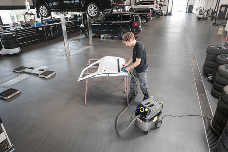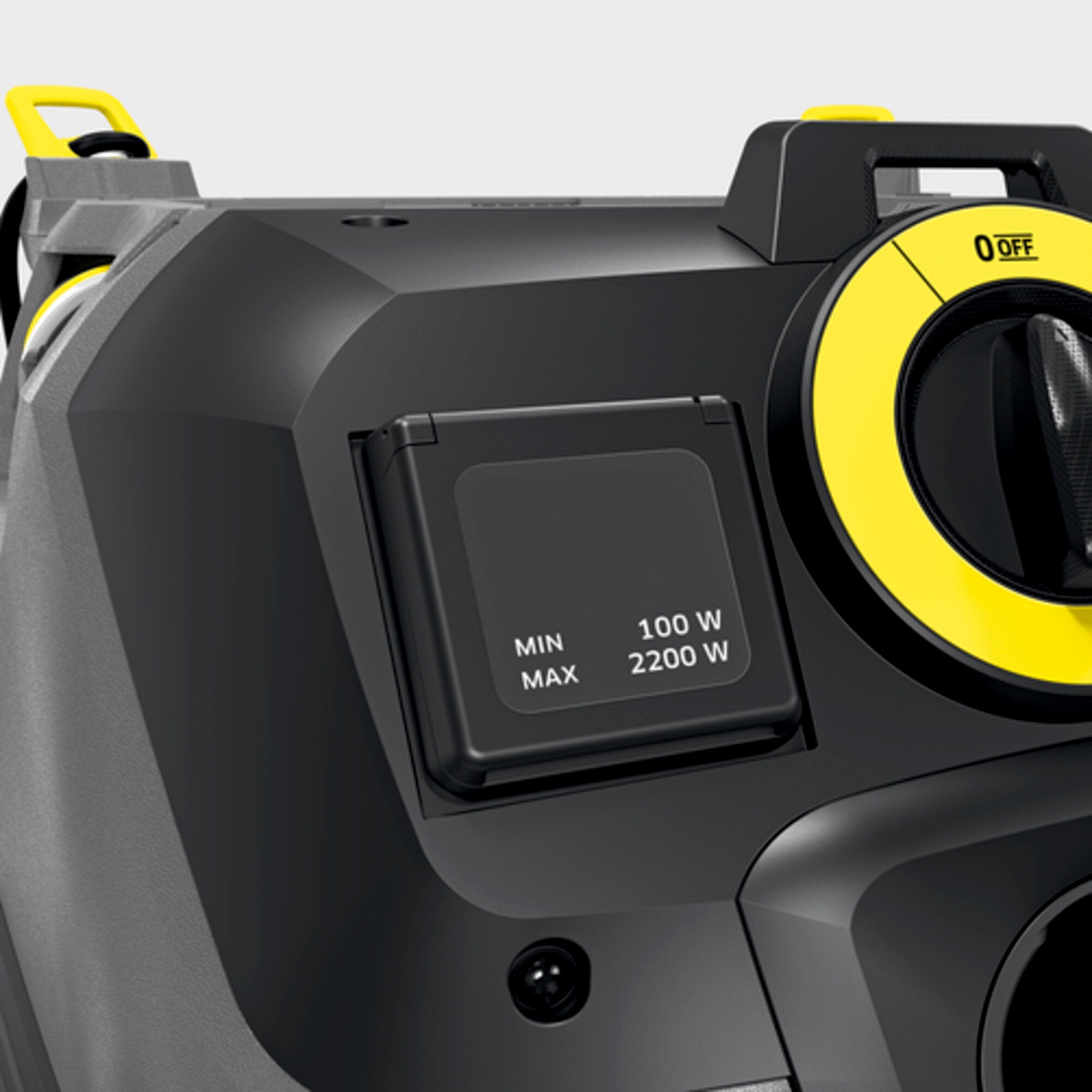 Outre le décolmatage semi-automatique très efficace du filtre, un connecteur intégré avec fonction Marche/Arrêt automatique pour travailler avec des outils électroportatifs compte parmi les équipements qui distinguent notre aspirateur eau et poussières compact NT 30/1 Ap Te L. Sa puissance d'aspiration exceptionnelle permet des utilisations variées, qu'il s'agisse de petits travaux de meulage, du nettoyage intérieur de véhicules, de l'élimination de liquides ou de l'aspiration de machines et d'installations. Même l'aspiration de quantités moyennes de poussières fines est possible sans problèmes sans sac filtrant. L'aspirateur est en outre doté d'une préparation antistatique. Tous les réglages essentiels de l'appareil simple d'utilisation s'effectuent à l'aide d'un bouton rotatif central ; pour les accessoires entièrement remaniés, des possibilités de rangement bien pensées ont été intégrées. De conception ultra plate, la partie supérieure de l'aspirateur eau et poussières permet de poser et, grâce aux possibilités d'arrimage, aussi de fixer une boîte à outils.