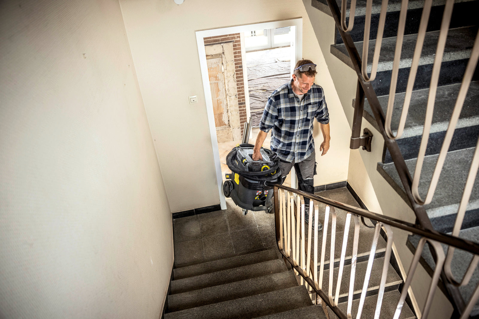 Sur les chantiers et dans les ateliers, différents types de poussières fines dangereuses, en partie susceptibles de pénétrer dans les poumons, sont produites quotidiennement. Grâce à son système de décolmatage du filtre Tact commandé par capteur, l'aspirateur eau et poussières compact NT 30/1 Tact Te M ACD n'a pas son pareil pour éliminer d'énormes quantités de poussières fines tout en garantissant une efficacité de filtration de 99,9 %. Cet appareil est homologué pour l'aspiration des poussières combustibles conformément à la nouvelle norme ACD (Appliance for the Pickup of Combustible Dust) et à la norme IEC 60335-2-69:2021. Sa puissance d'aspiration est contrôlée en continu par un capteur et le décolmatage du filtre est réglé en fonction des besoins. Pour l'aspiration directe de la poussière produite par des outils électroportatifs, l'appareil intègre une prise électrique avec mise en marche automatique et un système antistatique complet avec accessoires conducteurs. Toutes les poussières déjà déposées sur le sol ou les machines sont aspirées sans effort dans la cuve robuste de 30 litres avec pare-chocs et roulettes pivotantes en métal grâce aux accessoires rangés sur l'appareil.