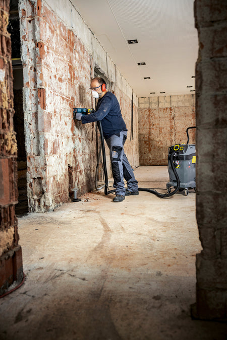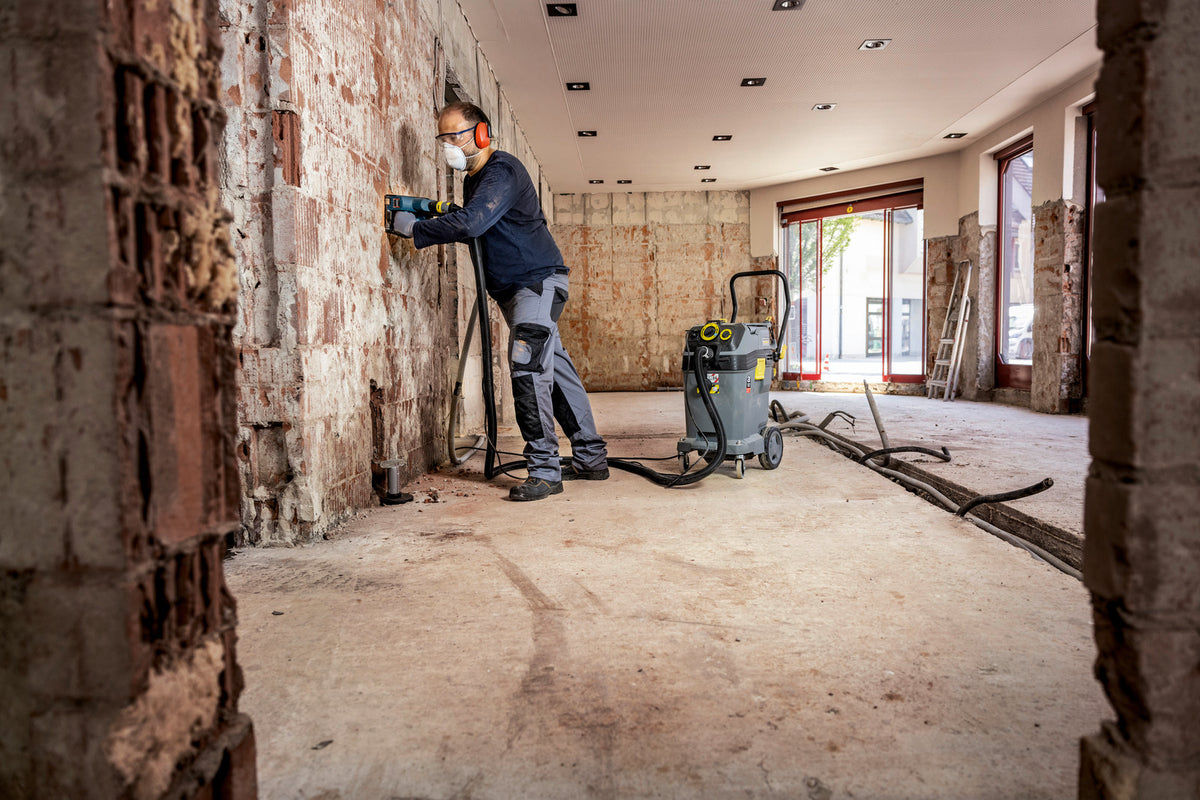 La grande cuve de 50 litres avec guidon réglable et flexible d'évacuation du NT 50/1 Tact Te H ACD en fait la solution idéale pour éliminer en toute sécurité les poussières nocives et cancérigènes, notamment dans les environnements industriels. Certifié et homologué pour toutes les poussières de classe H – y compris les poussières d'amiante –, il protège parfaitement les utilisateurs et l'environnement de travail. Il est en outre certifié pour l'aspiration de poussières combustibles selon la norme IEC 60335-2-69:2021 et la norme ACD (Appliance for the Pickup of Combustible Dust). Le filtre plissé plat Safety/HEPA à décolmatage permet d'aspirer les poussières dangereuses avec un sac filtrant de sécurité ou un sac de mise au rebut PE ainsi que de grandes quantités de poussières moins nocives directement dans la cuve. Son système de décolmatage du filtre Tact commandé par capteur assure la propreté du filtre pour une puissance d'aspiration constamment élevée. Une prise électrique intégrée avec mise en marche automatique et un système antistatique complet avec accessoires conducteurs viennent parfaire cet appareil professionnel.