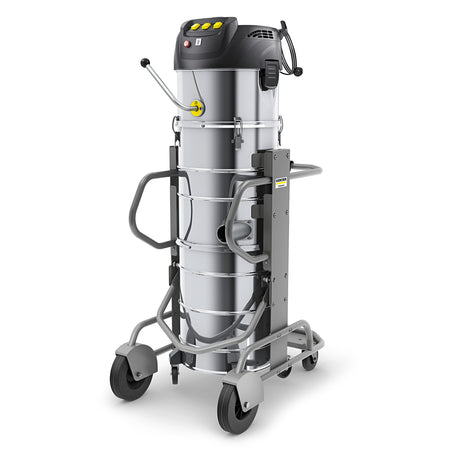 Grande quantité de matières aspirées nocives, avec sécurité anti trop-plein électronique pour les matières solides et les poussières, durable, robuste, mobile : notre aspirateur industriel de gamme standard IVM 100/36-3 équipé de 3 moteurs pour une aspiration universelle de matières solides fines et grossières en milieu industriel. Cet appareil fiable fonctionne en mode monophasé, chacun des 3 moteurs pouvant être commandé individuellement. Le grand filtre en étoile de la classe de poussière M peut être nettoyé facilement, confortablement et de manière fiable par le biais du levier du mécanisme vibrant. Le décolmatage du filtre lui confère une durée de vie prolongée, offrant ainsi une maintenance réduite. Le corps et la cuve à déchets de l'appareil sont en acier inoxydable résistant aux acides, tandis que le boîtier est fabriqué en acier robuste et dispose de grandes roues assurant un transport facile.