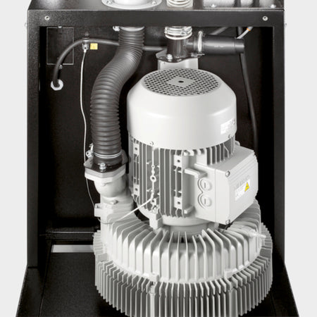- Un compresseur à canal latéral sans usureAvec 3 kW de puissance absorbée et démarrage progressif pour l'aspiration de grandes quantités de poussières et de matières solides.Pour une puissance d'aspiration importante et une durée de vie minimale de 20 000 heures.Convient à l'utilisation par plusieurs équipes et/ou avec plusieurs postes d'aspiration.