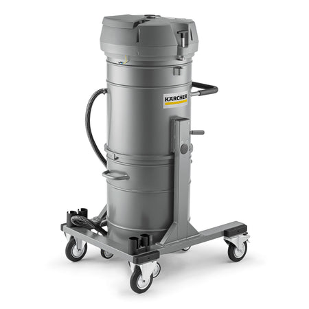 Aspirateur industriel IVR 100/24-2 Sc M ACD conçu pour l'aspiration de quantités moyennes de copeaux et de poussières inflammables dans les zones sans risque d'explosion. Avec une puissance absorbée de 2,4 kW, sa solution performante à deux turbines alimentée par courant alternatif garantit une puissance d'aspiration élevée constante. Cette dernière est maintenue constante grâce à un filtre à poches lavable et durable de la classe de poussière M ainsi que grâce à un décolmatage manuel efficace du filtre. Le vidage dégageant peu de poussière de la cuve à roulettes de 100 litres s'effectue confortablement grâce à un châssis amovible ergonomique sans avoir à retirer la tête motrice tandis qu'un sac PE avec mécanisme de fermeture intégré et flexible de compensation de pression garantit en outre une élimination sécurisée des matières aspirées. Le châssis mobile, le fonctionnement silencieux et le format compact, robuste et très facile d'entretien complètent le vaste éventail d'équipements de l'aspirateur à courant alternatif.