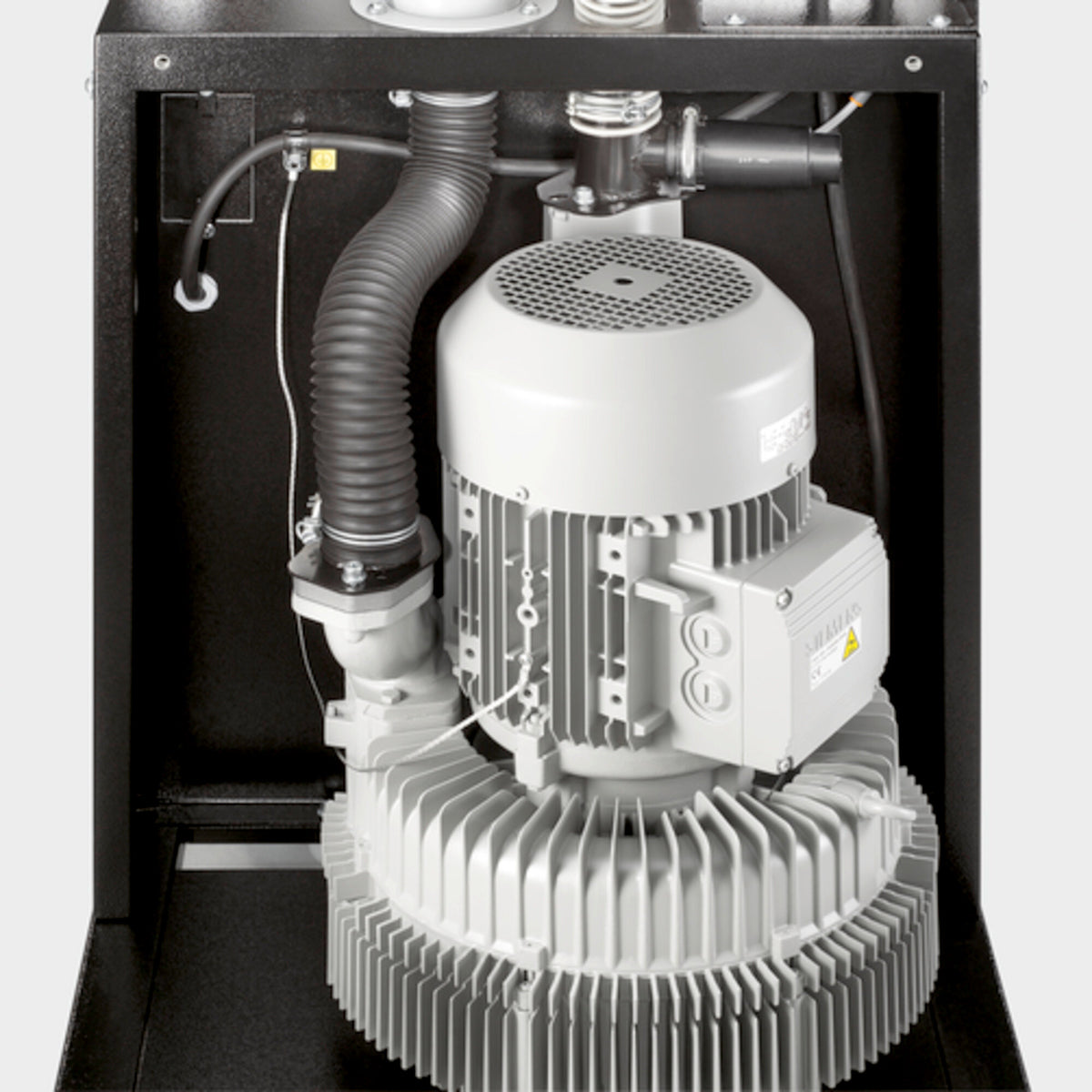- Un compresseur à canal latéral sans usureAvec 3 kW de puissance absorbée et démarrage progressif pour l'aspiration de grandes quantités de poussières et de matières solides.Pour une puissance d'aspiration importante et une durée de vie minimale de 20 000 heures.Optimal pour les usages mobiles avec utilisation par plusieurs équipes.