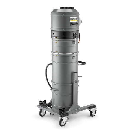 Aspirateur industriel IVR 100/30 Sc H ACD robuste et utilisable de manière mobile comme stationnaire dans les zones sans risque d'explosion pour les utilisations intensives en trois-huit. L'aspirateur à courant triphasé doté d'une technologie de filtration de la classe de poussière M est adapté à l'aspiration de quantités moyennes de copeaux et de poussières fins, inflammables et nocifs (VLEP ≥ 0,1 mg/m³), de gros copeaux, de sable ou de grenaille. Avec son fonctionnement silencieux, son décolmatage manuel du filtre à poches lavable et durable à puissance d'aspiration élevée constante et son format facilitant l'entretien, l'aspirateur satisfait également à d'autres exigences importantes de l'industrie. Un châssis amovible ergonomique ainsi qu'un sac PE avec mécanisme de fermeture intégré et flexible de compensation de pression garantissent un vidage confortable, sécurisé et dégageant peu de poussière de la cuve à roulettes de 100 litres. Un fonctionnement silencieux à puissance d'aspiration élevée est garanti par le moteur à entraînement direct, à faible usure avec une puissance absorbée de 3 kW ainsi que par un compresseur à canal latéral performant et économe en énergie (IE2) doté d'une turbine à géométrie optimisée pour des dépressions importantes.