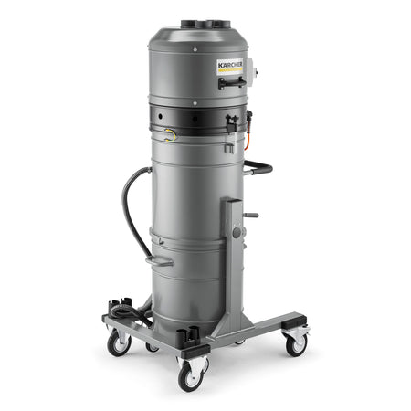 La gamme Compact pour une installation ultra compacte dans les zones sans risque d'explosion ! Malgré sa contenance importante, l'IVR 100/40 Sc M ACD présente une surface de base relativement réduite et convient ainsi parfaitement à l'utilisation dans des halls de production où l'espace est restreint. Un filtre à poches interne renforcé (classe de poussière M), doté d'une grande surface filtrante (1,75 m²) et d'un décolmatage efficace du filtre ainsi que d'un système de préséparation cyclonique, permet un ramassage fiable des poussières fines, poussières inflammables y compris. Un flexible de compensation de pression et un dispositif de retenue garantissent une aspiration dégageant peu de poussière directement dans un sac de récupération. La cuve est reliée à l'aspirateur par une structure de déplacement confortable à manipuler en position verticale. Le niveau sonore de l'appareil est agréable grâce au silencieux intégré. La conception robuste et le compresseur à canal latéral sans usure garantissent une longue durée de vie, même en cas d'utilisation continue dans l'industrie.