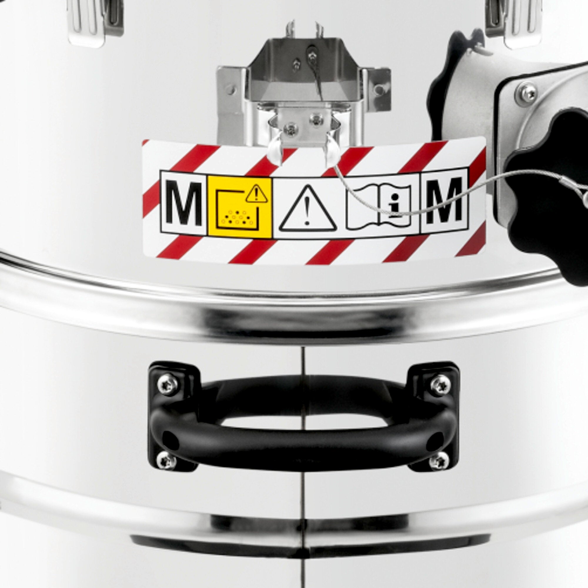 Le modèle d'entrée de gamme des aspirateurs industriels de la gamme Super, certifié pour la classe de poussière M, séduit par ses performances convaincantes et par son équipement hors pair. L'IVS 100/40 M dispose en effet d'un moteur électrique économique (IE2) avec démarrage progressif pour éviter les pics de consommation au démarrage de l'aspirateur et d'un puissant compresseur à canal latéral de 4,0 kW. De grandes quantités de poussières fines et nocives sont ainsi aspirées sans problème par le grand filtre en étoile. Le nettoyage du système de filtration est un jeu d'enfant avec le dispositif de décolmatage horizontal du filtre. Le moteur intégré assure la transmission précise de la puissance pour une qualité de nettoyage toujours optimale, quelle que soit la force appliquée par l'utilisateur. Les nombreuses possibilités de rangement des accessoires sont un atout. Ils sont ainsi rangés en toute sécurité pour le travail quotidien et le transport de l'appareil. L'IVS 100/40 M est conçu pour des utilisations prolongées, permises notamment par la grande cuve en acier inoxydable anticorrosion de 100 litres avec structure de déplacement confortable. Une télécommande disponible en option vient étoffer la vaste gamme d'équipements.