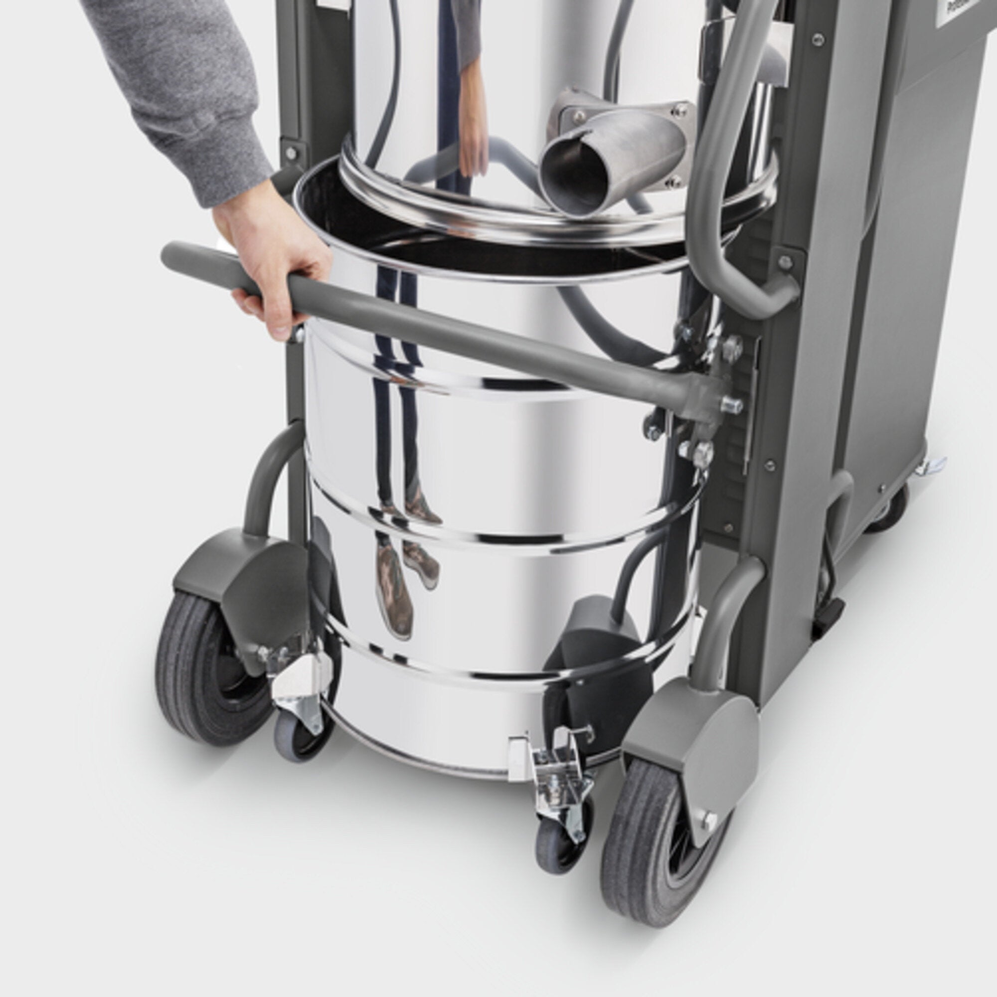 Le modèle haut de gamme de notre gamme Super d'aspirateurs industriels certifiés Ex : l'IVS 100/75 M Z22 impressionne par sa grande polyvalence, son niveau de sécurité maximal et ses performances hors pair. L'aspirateur mobile et stationnaire est équipé d'un puissant compresseur à canal latéral de 7,5 kW avec moteur IE2 à haut rendement et démarrage progressif pour éviter les pics de consommation non souhaités au démarrage de l'appareil. Parfait pour aspirer de grandes quantités de poussières fines, nocives et explosives, l'aspirateur est certifié pour une utilisation en zone 22 et pour la classe de poussière M. Il est notamment équipé pour cela d'un grand filtre en étoile testé pour la classe de poussière M et intégré de façon peu encombrante grâce à sa version à 16 plis. Le dispositif de décolmatage horizontal du filtre avec moteur garantit une puissance d'aspiration toujours optimale. La grande cuve en acier inoxydable de 100 litres avec structure de déplacement permet un travail sans interruption et une élimination aisée des déchets. Les accessoires peuvent être rangés à plusieurs endroits pour un transport sûr sans risque de les perdre.