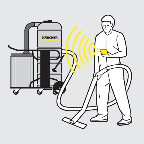 - Télécommande en optionTélécommande sans fil disponible en option permettant une connexion de l'appareil jusqu'à une distance de 100 m.Utilisation confortable de l'appareil et gain de temps grâce aux trajets inutiles évités.Utilisation optimisée de l'espace : l'aspirateur peut être rangé dans des zones inutilisées ou de sécurité.