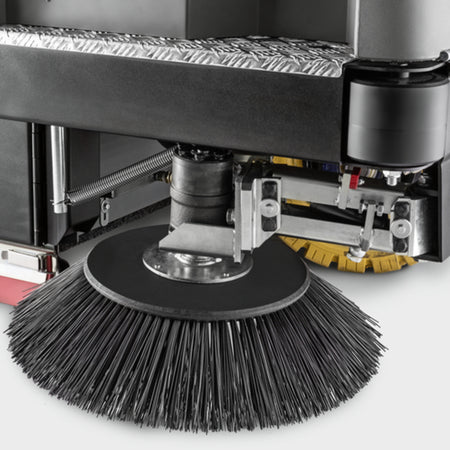 - Balais/blocs de lavage latéraux pivotants brossant des deux côtés de la machineAugmentation de la largeur de travail jusqu'à 1 755 mm.Permet un rendement surfacique supérieur à 16 000 m²/h.Protège l'appareil et l'objet à nettoyer.