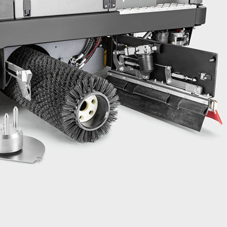 - Balais/blocs de lavage latéraux pivotants brossant des deux côtés de la machineAugmentation de la largeur de travail jusqu'à 1 755 mm.Permet un rendement surfacique supérieur à 16 000 m²/h.Protège l'appareil et l'objet à nettoyer.