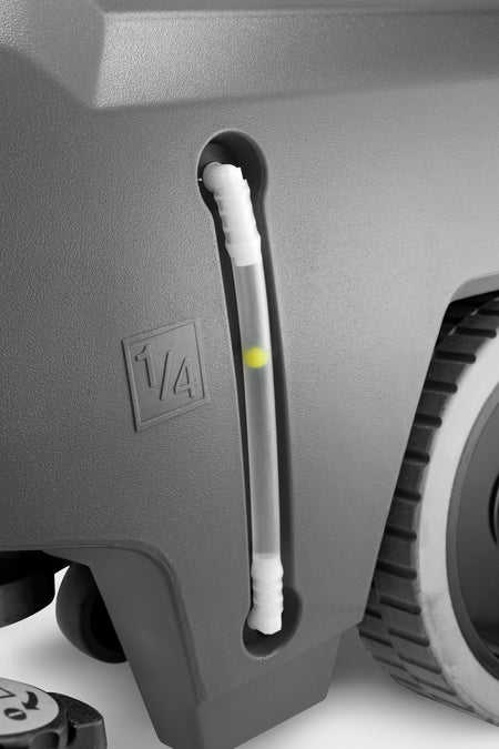 Performante, compacte, silencieuse : l'autolaveuse aspirante à guidage manuel et fonctionnant sur batterie 43/25 C Classic Bp Pack de Kärcher. La batterie lithium-ion sans maintenance d'une capacité de 80 Ah qui est installée de série permet, avec le concours de la tête de brossage à disques au fonctionnement très économique et silencieux, jusqu'à deux heures de nettoyage. Grâce à sa résistance au cyclage très élevée, elle autorise en outre des charges d'appoint ou rapides à tout moment à l'aide du chargeur rapide correspondant. Du fait de son format compact avec 43 centimètres de largeur de travail et deux réservoirs de 25 litres pour l'eau propre et l'eau sale, cette petite laveuse de sols convainc par sa maniabilité optimale, notamment dans les espaces exigus. Par conséquent, elle est parfaite pour les entreprises de nettoyage de bâtiments ainsi que pour le nettoyage courant dans l'hôtellerie, la gastronomie, les petits commerces ou les cliniques.