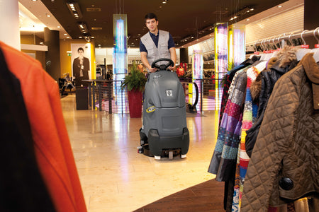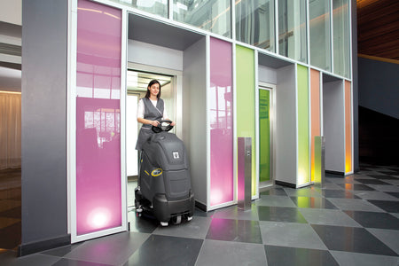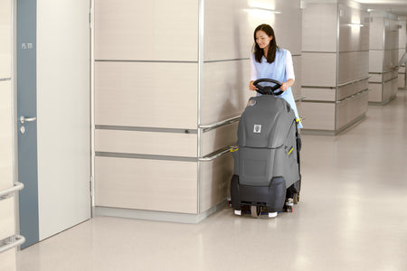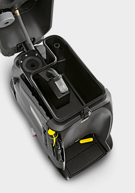 L'autolaveuse aspirante à conducteur debout très compacte BD 50/40 RS Bp Pack, équipée de puissantes batteries 36 V, combine la manœuvrabilité d'une machine autotractée à la vitesse d'une machine autoportée. Le petit rayon de braquage d'env. 120 cm permet une très bonne couverture des surfaces, même dans les espaces étriqués. La position surélevée du conducteur offre une visibilité optimale. La technologie à disque élaborée comprenant une grande brosse garantit une efficacité de nettoyage maximale. Grâce au suceur d'aspiration capable de pivoter autour de la tête de brossage, une aspiration intégrale de l'eau sale est possible, même pendant un demi-tour sur place. Le suceur d'aspiration peut être changé en quelques secondes sans outils. L'unité de balayage intégrée rend quasiment inutile tout prébalayage. Il suffit d'appuyer sur un bouton pour activer le mode Eco de la machine. Ainsi, le nettoyage courant peut être réalisé en consommant peu d'énergie, en respectant l'environnement, en économisant du temps et des coûts, et ce, tout en obtenant des résultats de nettoyage parfaits. Grâce au chargeur intégré, les batteries peuvent être rechargées rapidement et facilement dans n'importe quelle prise de courant standard. Cette machine est idéale pour les entreprises de nettoyage de bâtiments et les utilisations dans les supermarchés, les installations industrielles, les bâtiments publics ou les établissements de santé.