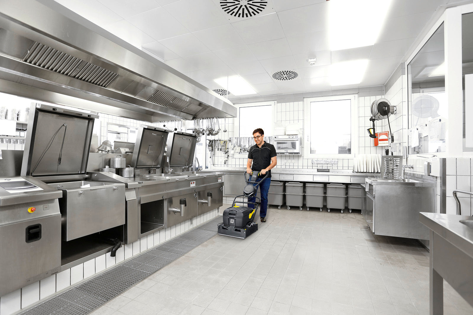 Kärcher fête ses 90 ans : la BR 40/10 C Anniversary Edition en noir offre une utilisation flexible. Elle permet un lavage et une aspiration silencieux dans les deux sens. Elle dispose d'un guidon rabattable ainsi que de réservoirs amovibles qui peuvent être transportés sans effort grâce à une poignée de transport à dispositif d'arrêt. Les brosses et les raclettes d'aspiration peuvent être changées en quelques secondes sans outils. La fourniture de l'édition anniversaire inclut en outre deux brosses à profil en relief en coloris orange.