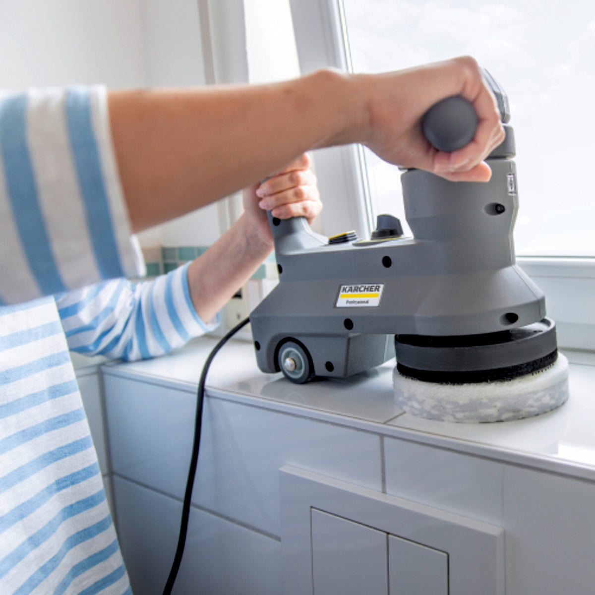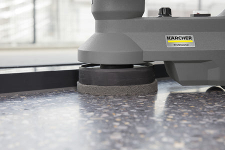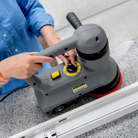 Grâce à ses dimensions compactes (33 cm x 17 à 20 cm x 29 cm), l'autolaveuse fonctionnant sur secteur BD 17/5 C est particulièrement adaptée à l'utilisation dans les zones qui n'offrent pas suffisamment d'espace pour les automates de nettoyage classiques et qui doivent toujours faire l'objet d'un nettoyage à la main coûteux. Le carter de la machine est composé de plastique robuste, résistant aux chocs. La brosse-disque et le plateau entraîneur se remplacent facilement en quelques secondes. Des éléments de commande accessibles latéralement garantissent un maniement rapide et pratique. Grâce aux deux poignées, la machine d'un poids de seulement 5 kilogrammes se guide en toute sécurité. À l'aide du régulateur de vitesse de rotation (0 à 450 tr/min), la machine peut être ajustée de façon optimale à la situation de nettoyage en question. Le nettoyage en profondeur, la cristallisation ou le lustrage des surfaces dures et le shampouinage des surfaces recouvertes de moquette s'effectuent rapidement et efficacement. Notamment lors du nettoyage des escaliers, le nettoyage simultané des surfaces horizontales et verticales permet des économies sensibles de temps, d'efforts et de coûts. La BD 17/5 C aide à augmenter l'efficacité du procédé de nettoyage, particulièrement dans le domaine du nettoyage de bâtiments professionnel ou municipal. Les accessoires doivent être commandés en option selon les besoins.
