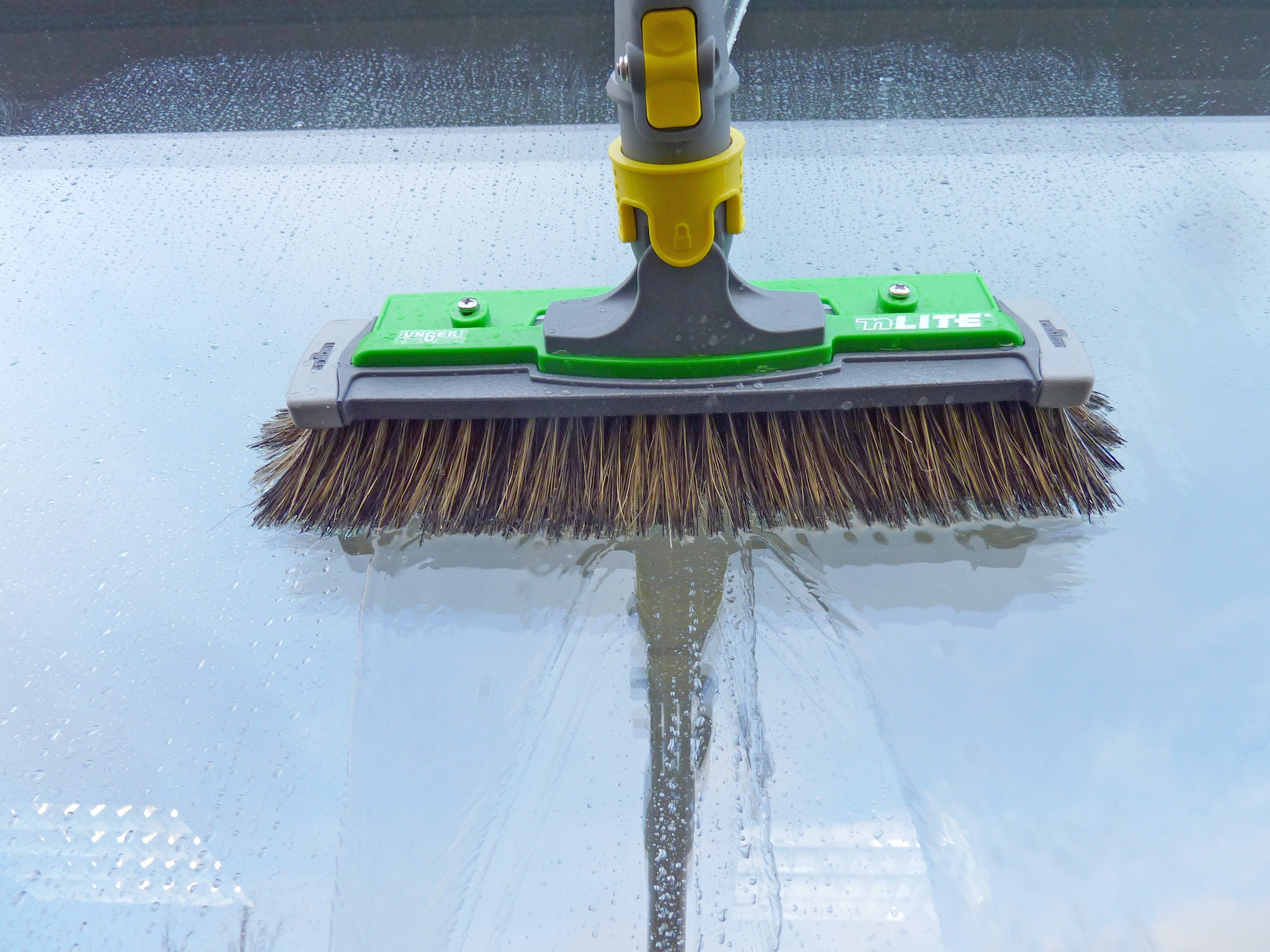 Performance de nettoyage extrêmement puissante. Glisse plus facilement et est moins lourde que les brosses en poils naturels. Recommandée pour le nettoyage préalable et le nettoyage de panneaux solaires.