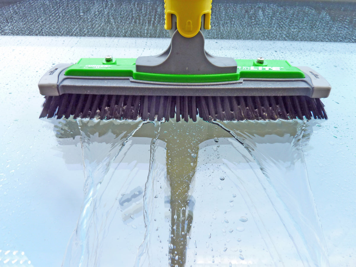 • Une rampe de buse de rinçage spéciale au-dessus de la brosse pour un rinçage puissant
